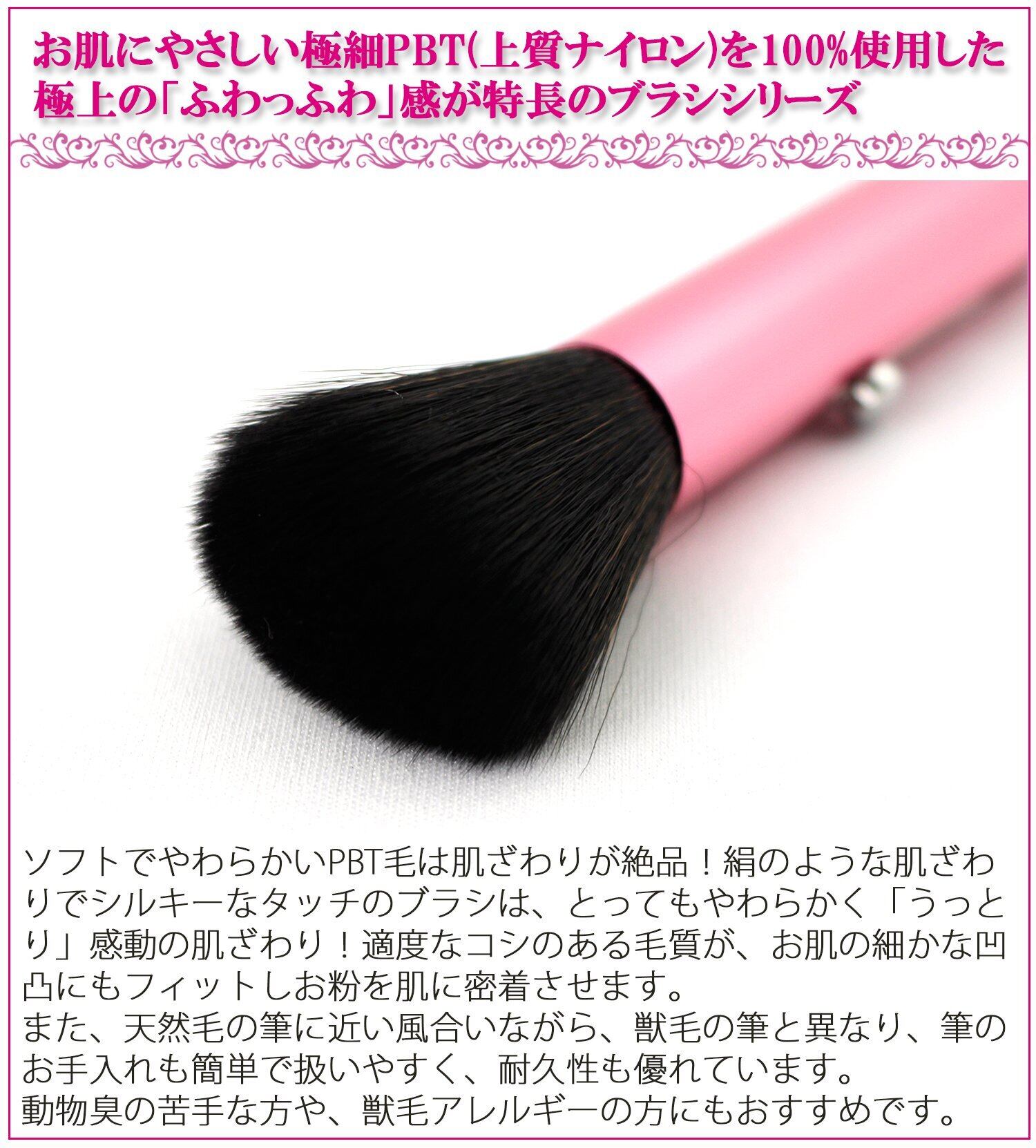●ソフトでやわらかいPBT毛は肌ざわりが絶品! 絹のような肌ざわりでシルキーなタッチのブラシは、とってもやわらかく「うっとり」感動の肌ざわり