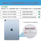 【適用機種】iPad Air 11インチ M3 2025(A3267 A3270)、iPad Air 11インチ M2 2024(A2902 A2903 A2904)、iPad Air 第5世代 2022(A2588 A2589 A2591)、iPad Air 第4世代 2020(A2324 A2072 A2316 A2325) 10.9インチ、その他の型式に適用されません。ご購入前、お持ちのiPadのモデル番号をご確認いただきます。