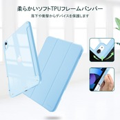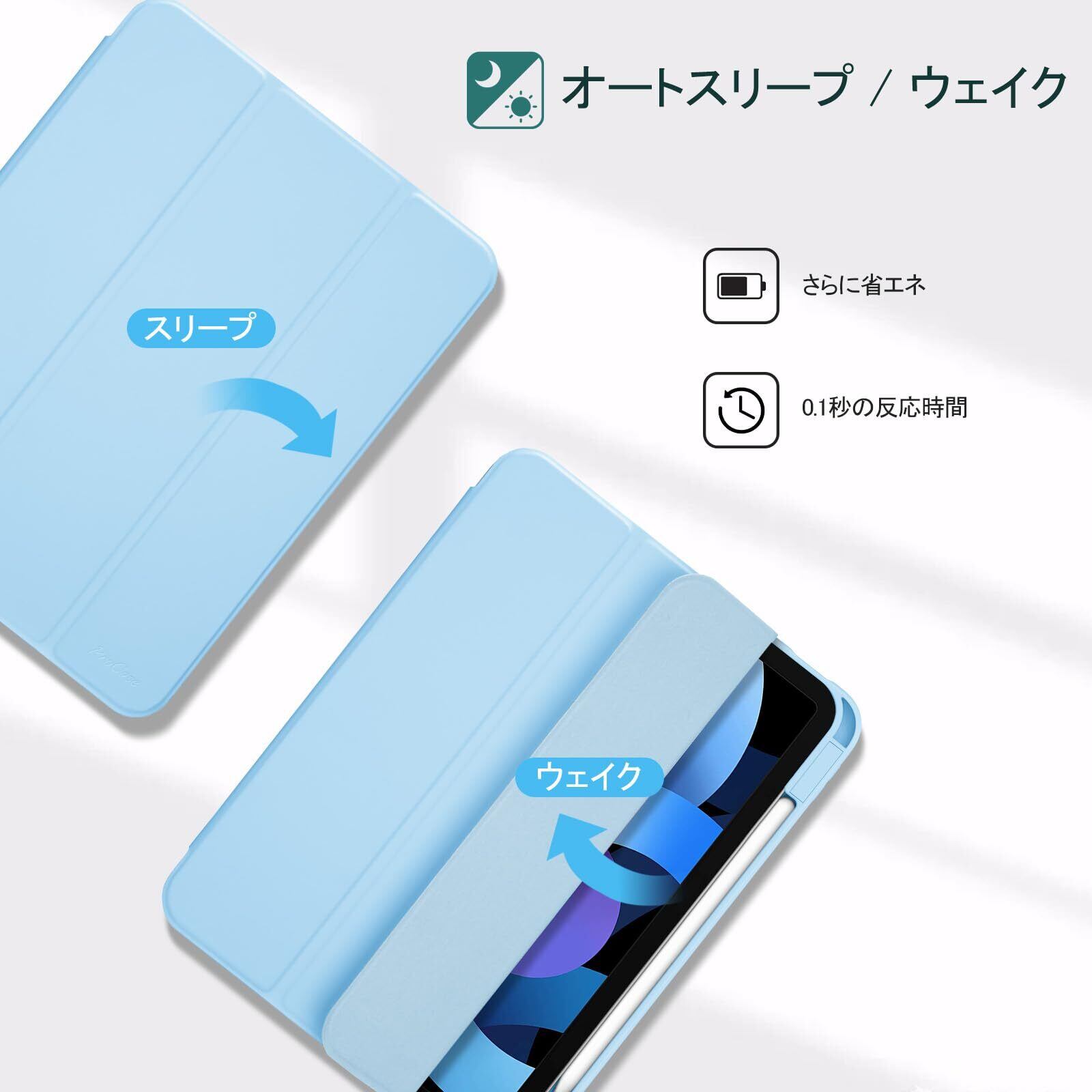 ProCase iPad Air 11インチ ケース M3 (2025) / M2 (2024) / iPad Air5 (2022) / Air4 (2020) 10.9インチ 透明 クリアカバー ペン収納 耐衝撃 三つ折り スタンド スマートカバー (スカイブルー)