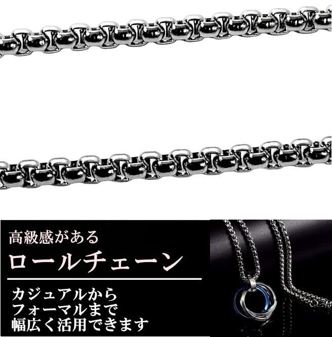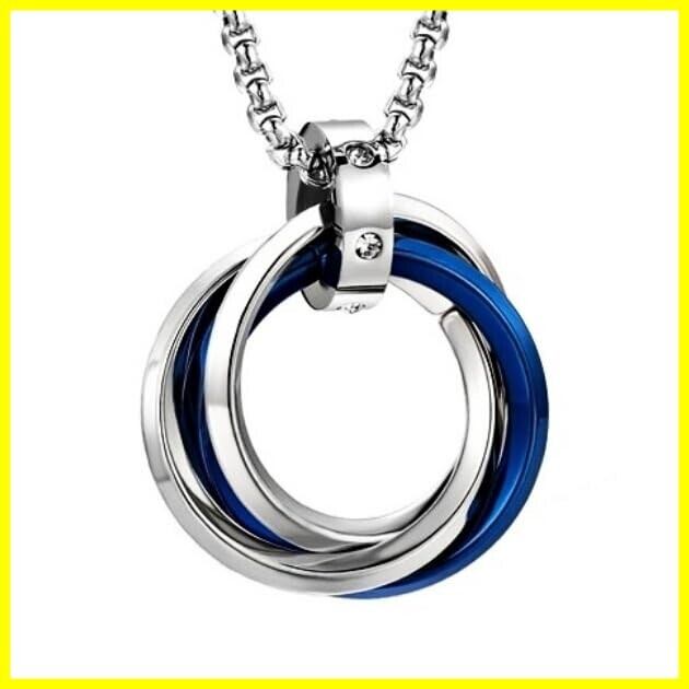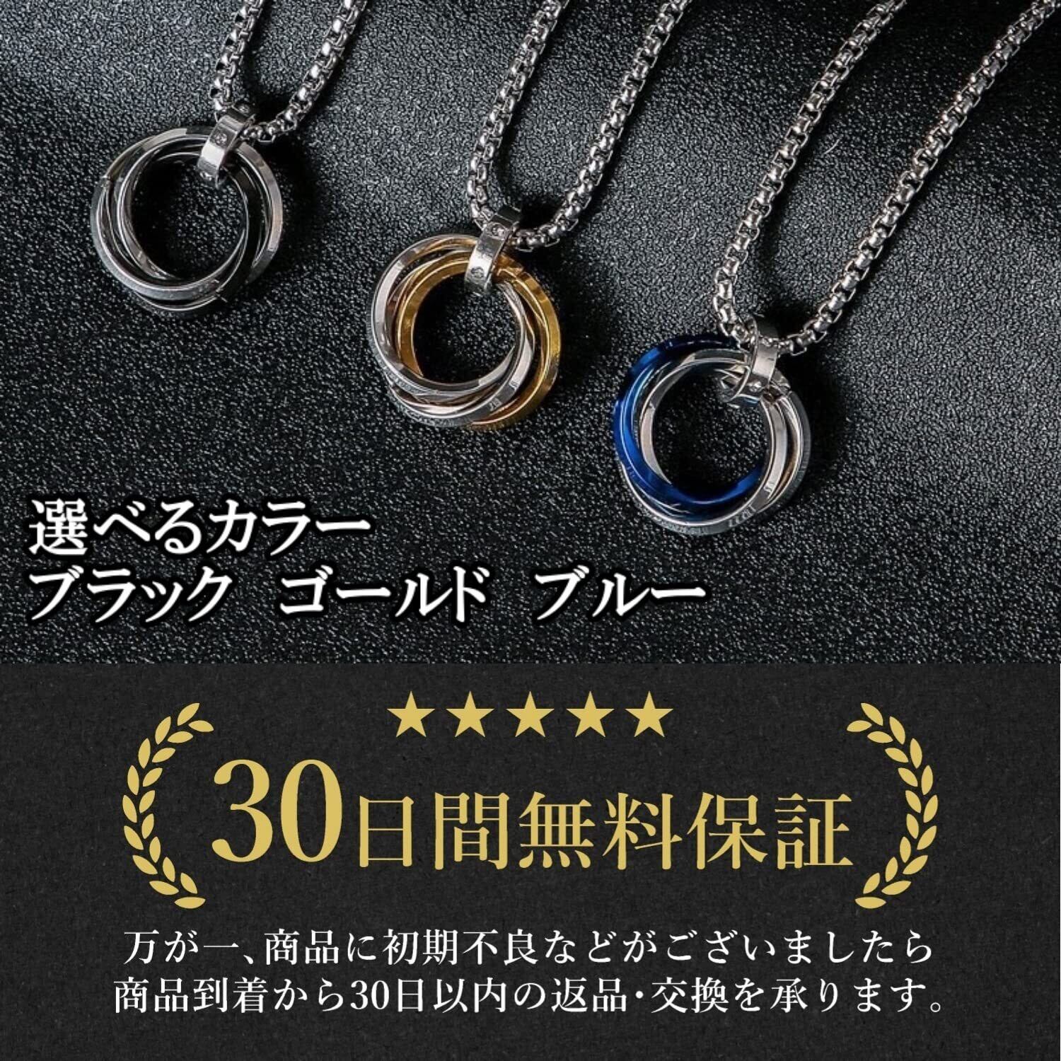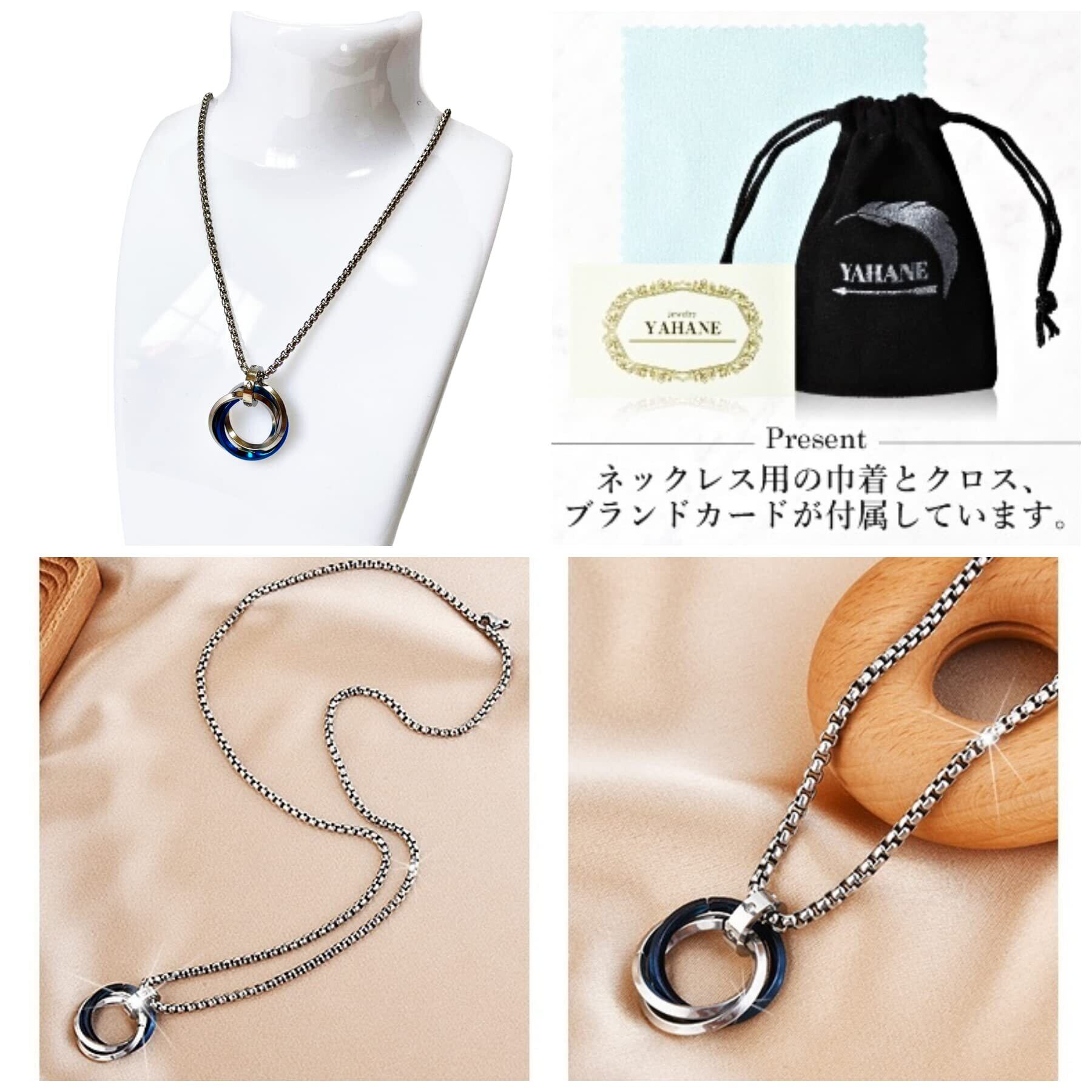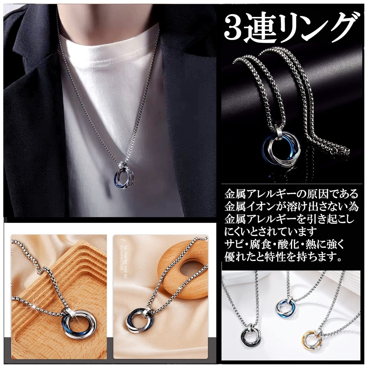 [YAHANE] ネックレス メンズ ペンダント ダブルリング 3連リング シンプル ステンレス アクセサリー シルバー ブルー ブラック ゴールド トップ ジュエリー アレルギーフリー 防水