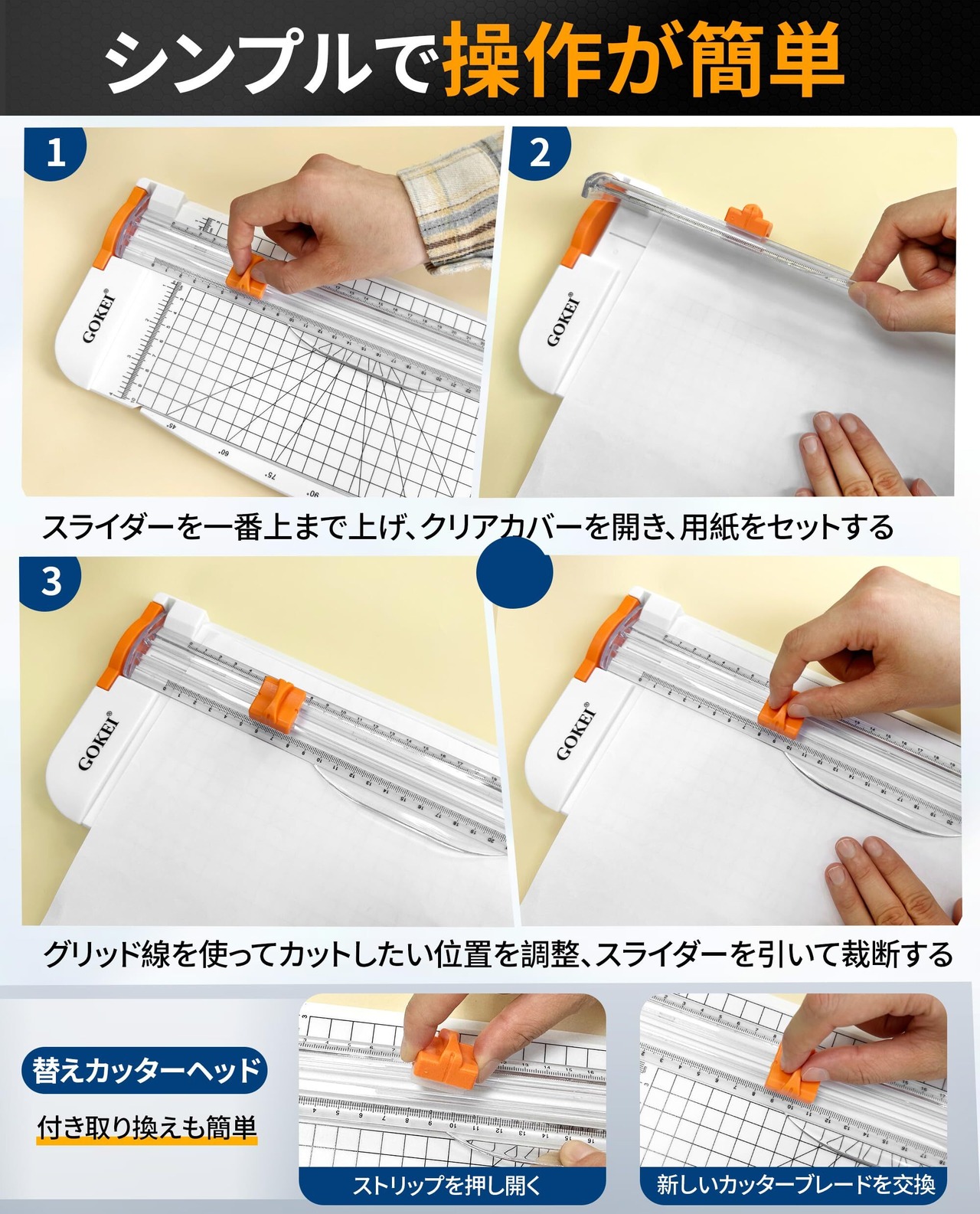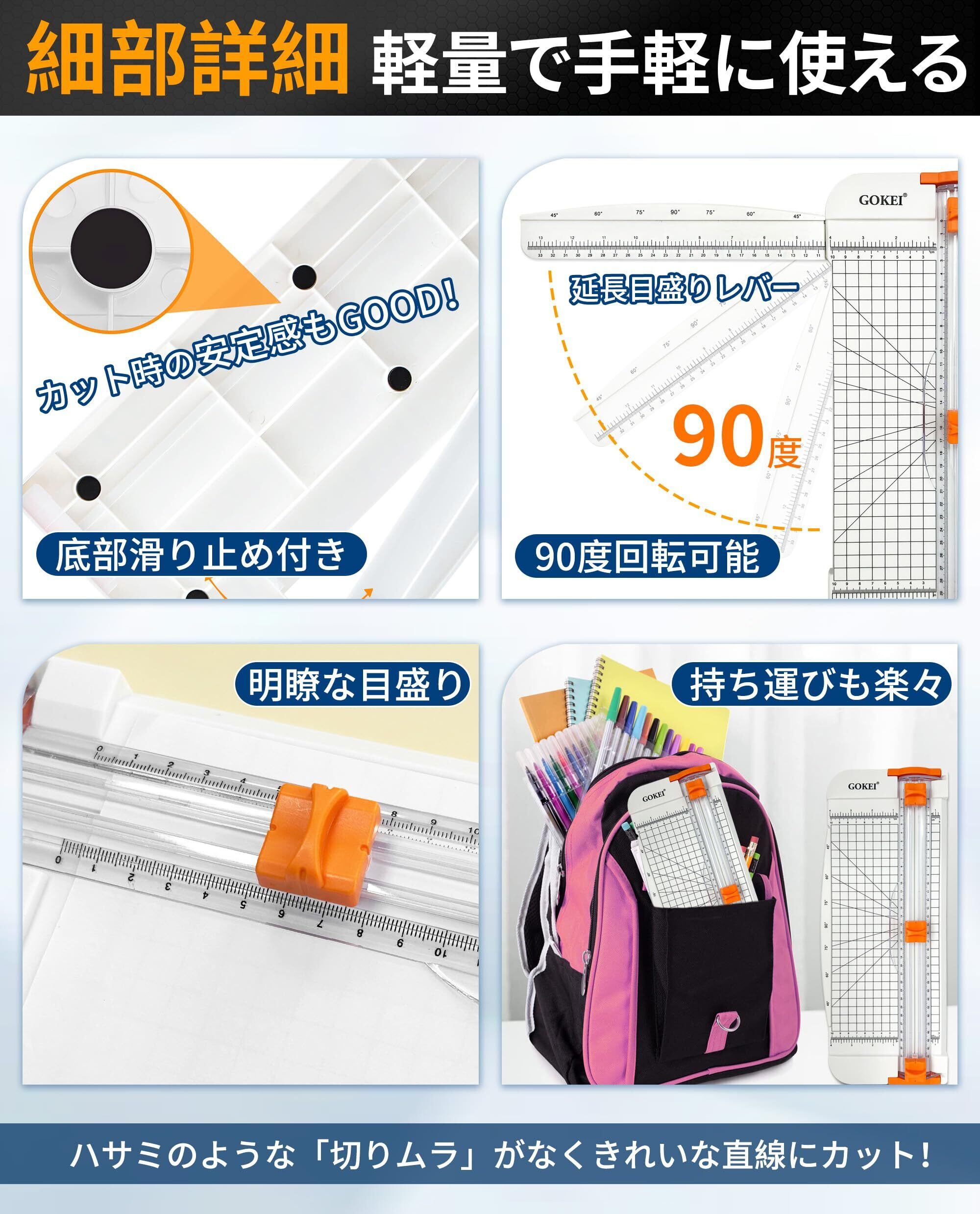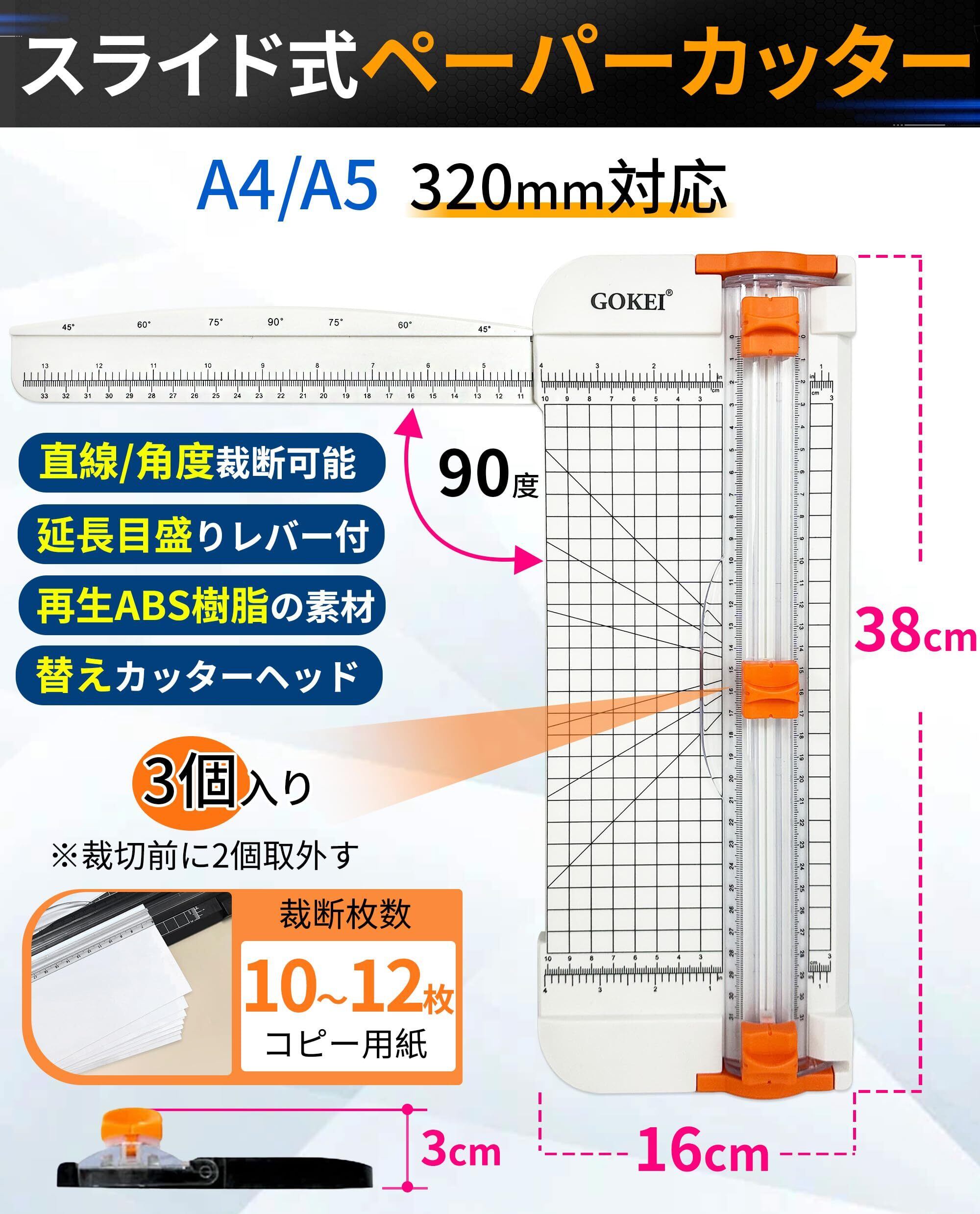 GOKEI ペーパーカッター ミニ裁断機 ペーパートリマー A4 A5 対応 スライドカッター 隠さ カッター 替刃 直線切断 角度切断 切れ味抜群 切断機 文房具 コーピー用紙 厚紙 名刺 写真 ラミネートフィルム オフィス用品 事務用品 業務用 家庭用 ディスクカッター ホワイト