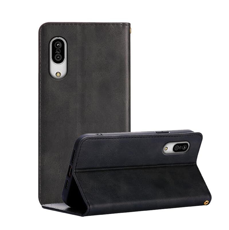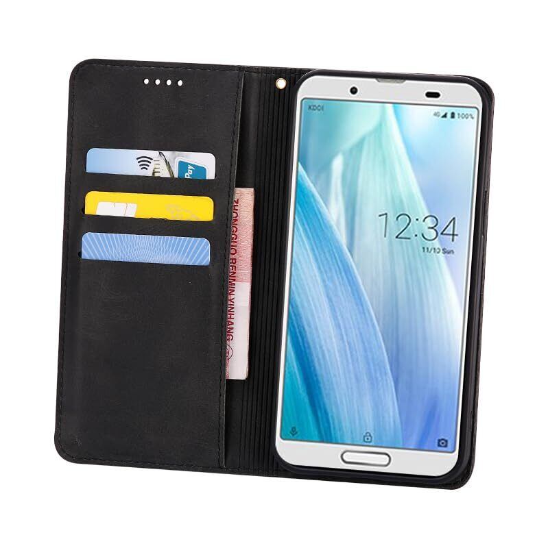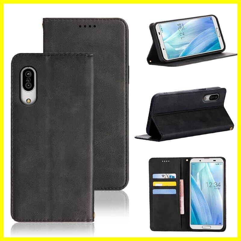 適用 AQUOS sense3/sense3 lite/sense3 basic/Android One S7 ケース 手帳型 SH-M12/SHV45/SHV48/SH-02M 手帳型 ケース カバー PUレザー カード収納 財布型 耐衝撃 ケース マグネット スタンド機能付き 5色 (ブラック)