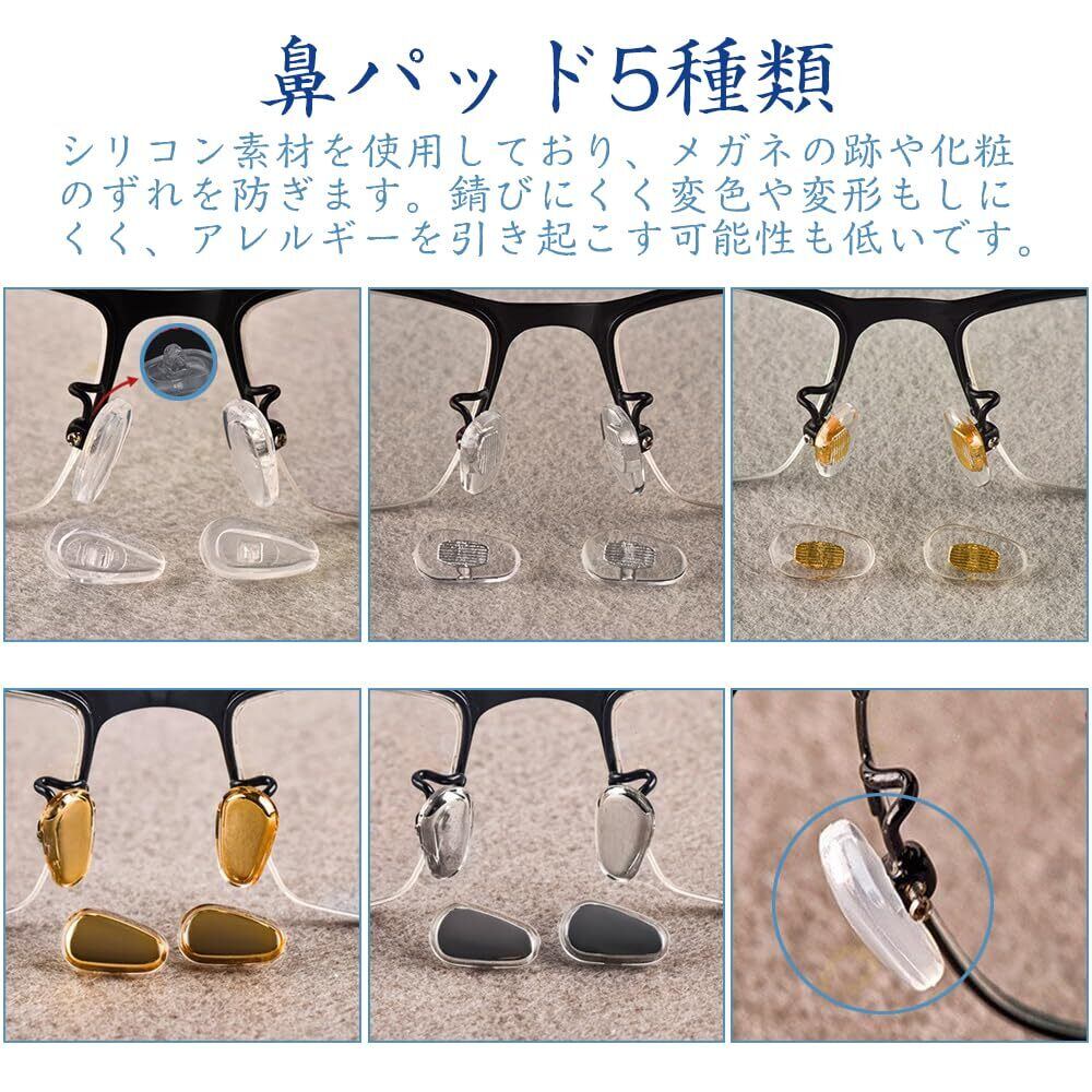 [LOYELEY] メガネ鼻パッド 眼鏡修理 25ペア 5種類 眼鏡 鼻あて 交換セット メガネ ノーズパッド 修理キット ドライバー メガネネジ クロス エアクッション 金属 シリコン パッド跡軽減 柔らかい メガネずり落ち防止 ズレ防止 メガネ用 ピンセット クリーニングクロス ケース付き