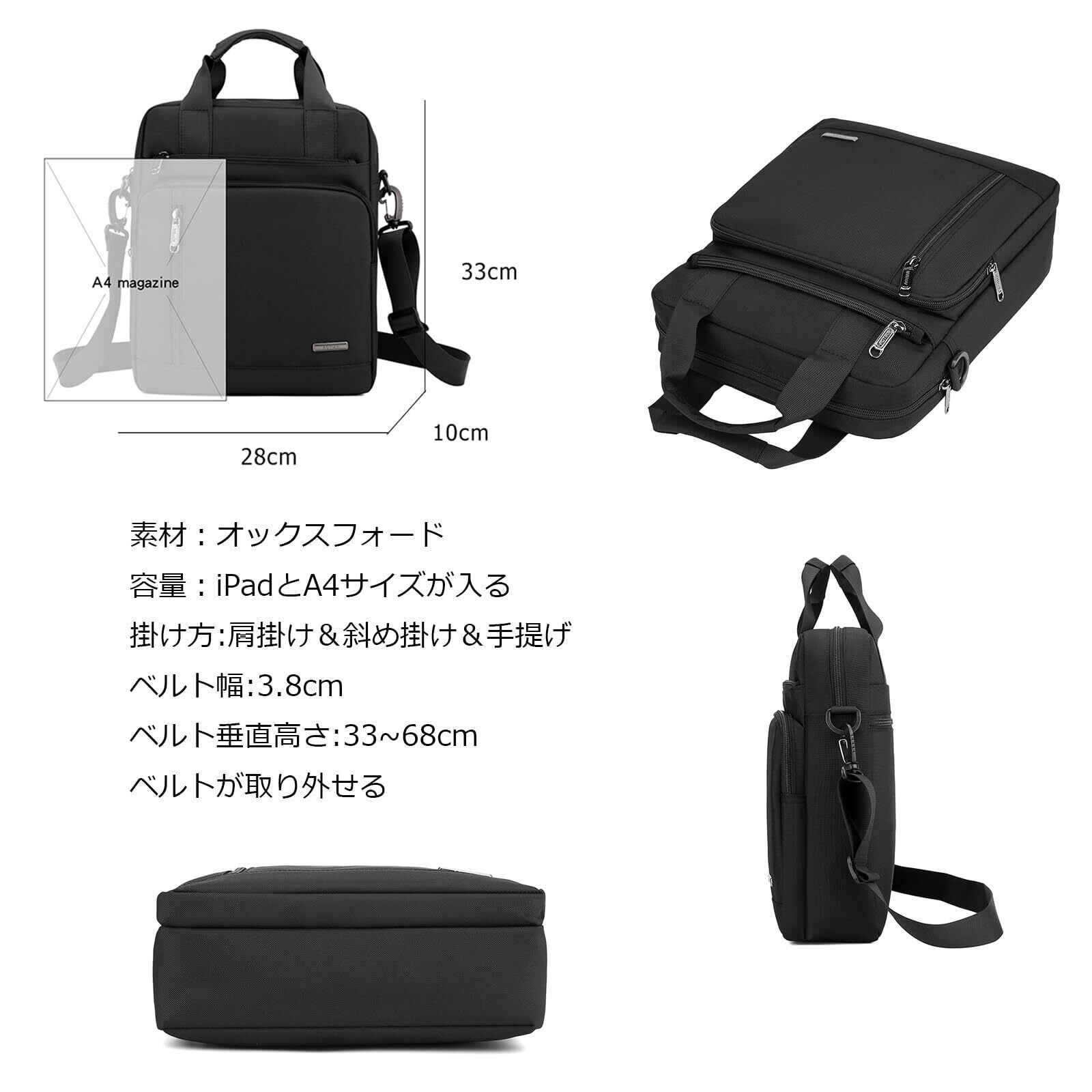 【商品仕様】素材: オックスフォード。重さ:530g。サイズ:横幅28cm×高さ33cm×マチ10cm。持ち手高さ:8cm。ショルダー垂直範囲:約33cm-68cm調整可能。紐幅:約3.8cm。8つの収納ポケットがあるので、収納力抜群!