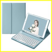 iPad6 iPad5 iPad Air Air2 Pro9.7 キーボード ケース 丸型キー 可愛い カラーキーボード カラフル iPad 第6世代 第5世代 9.7インチ アイパッド6 丸い 分離式 キーボード付き カバー アップル ペンシル 収納可能 (iPad5/iPad6/Air/Air2/Pro9.7, ブルー)