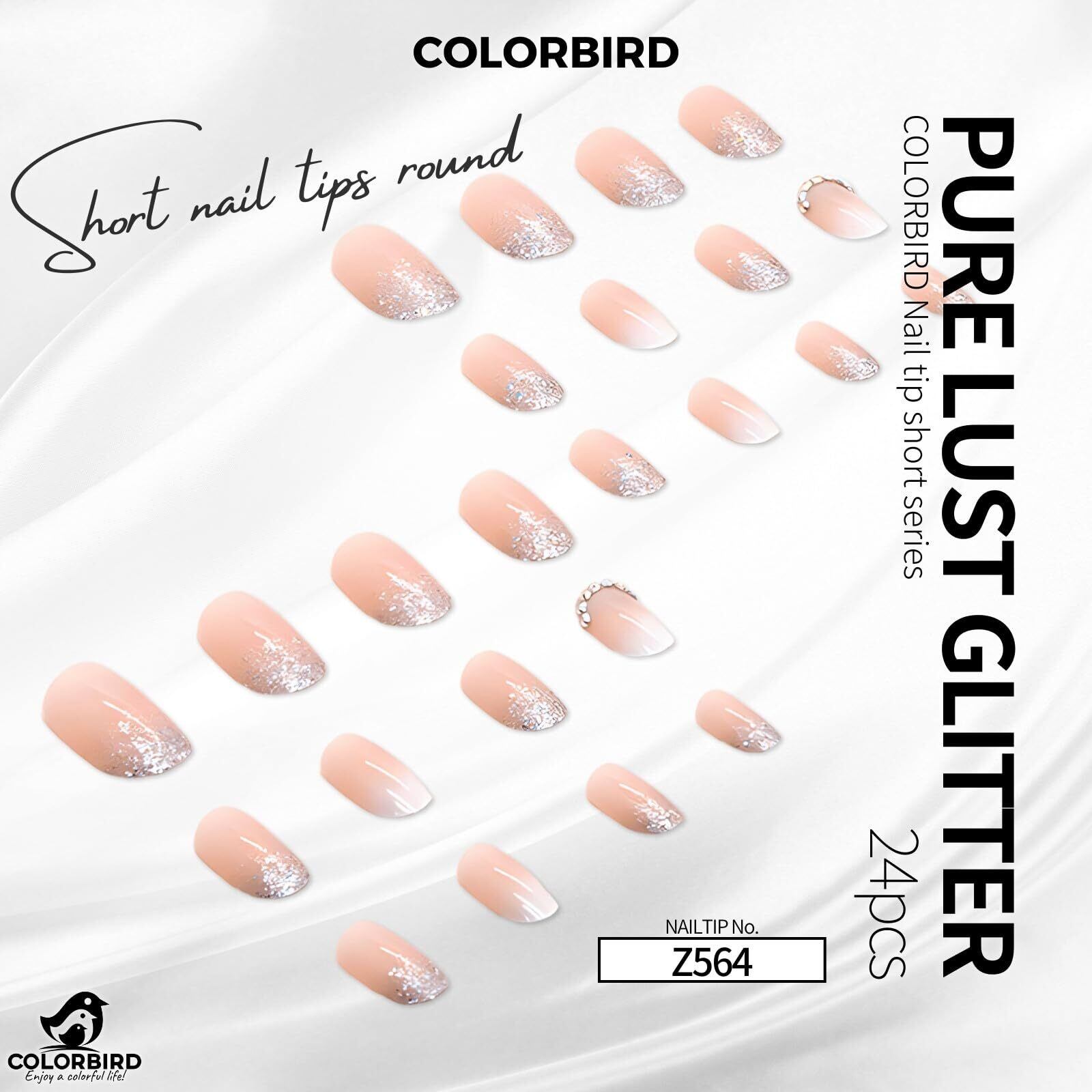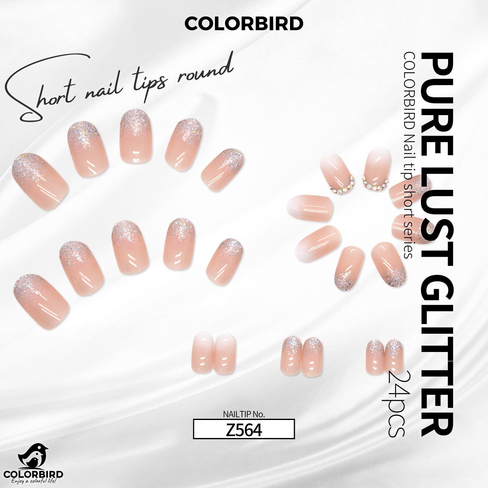 COLORBIRD ネイルチップ ショート 24枚 ピンク ネイル 付け爪 チップ 短め 可愛い ラウンド (Z564)