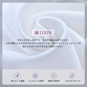 【素材構成】100% リネン(麻) さらりとした手触りが心地良い、リネン(麻)100%を使用。級水性、発散性に優れ、春~夏の汗をかきやすい時期でも蒸れずに気持ちよく着用できます。