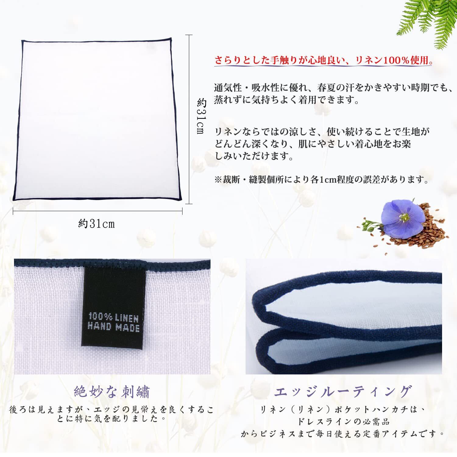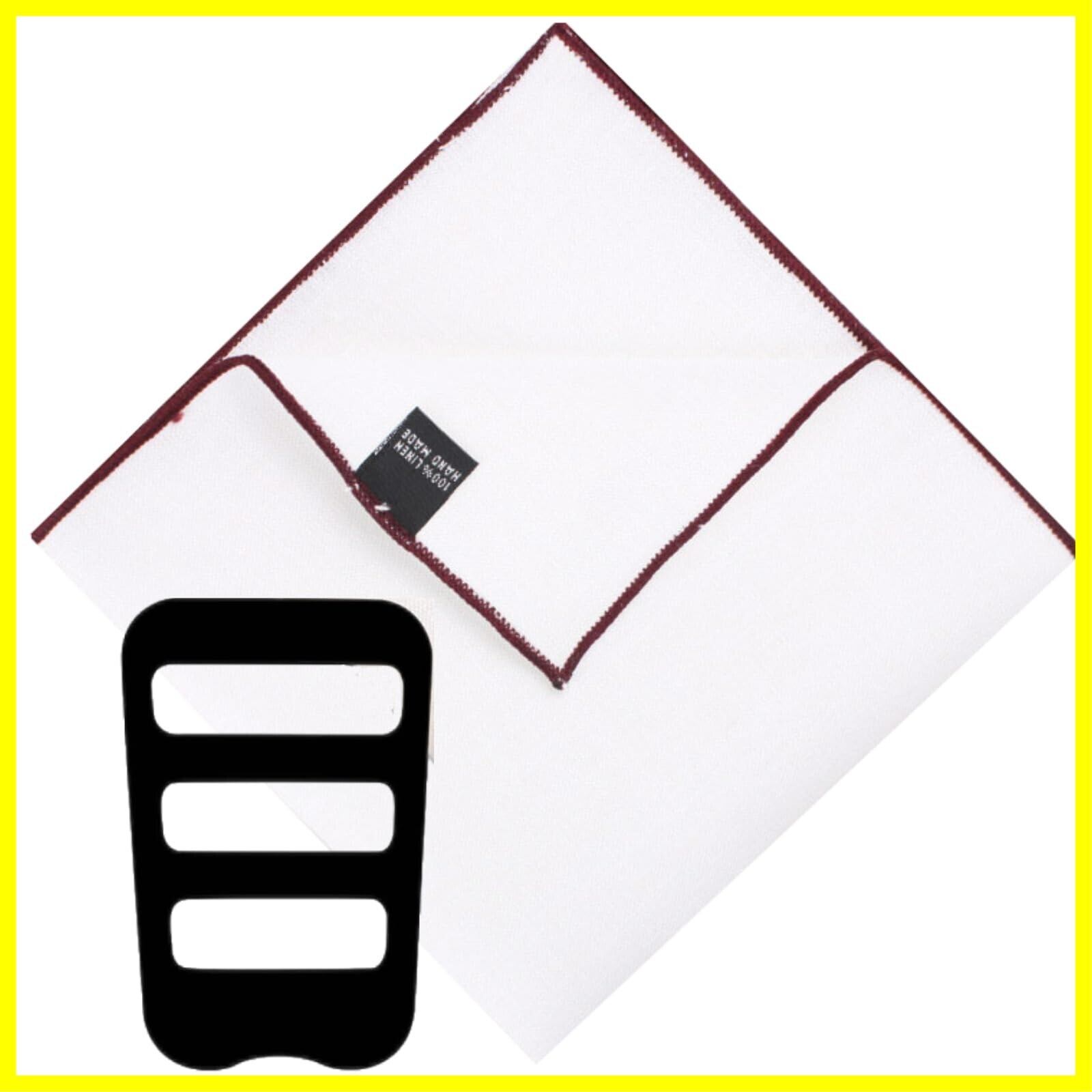 [Beirou] ポケットチーフ リネン 麻 100% 縁取り ホワイト 無地 ハンカチ メンズ 紳士 おしゃれ プレゼント 結婚式 フォーマル ビジネス カジュアル 型崩れ 防止 【ホルダーと折り方ガイド 付き】