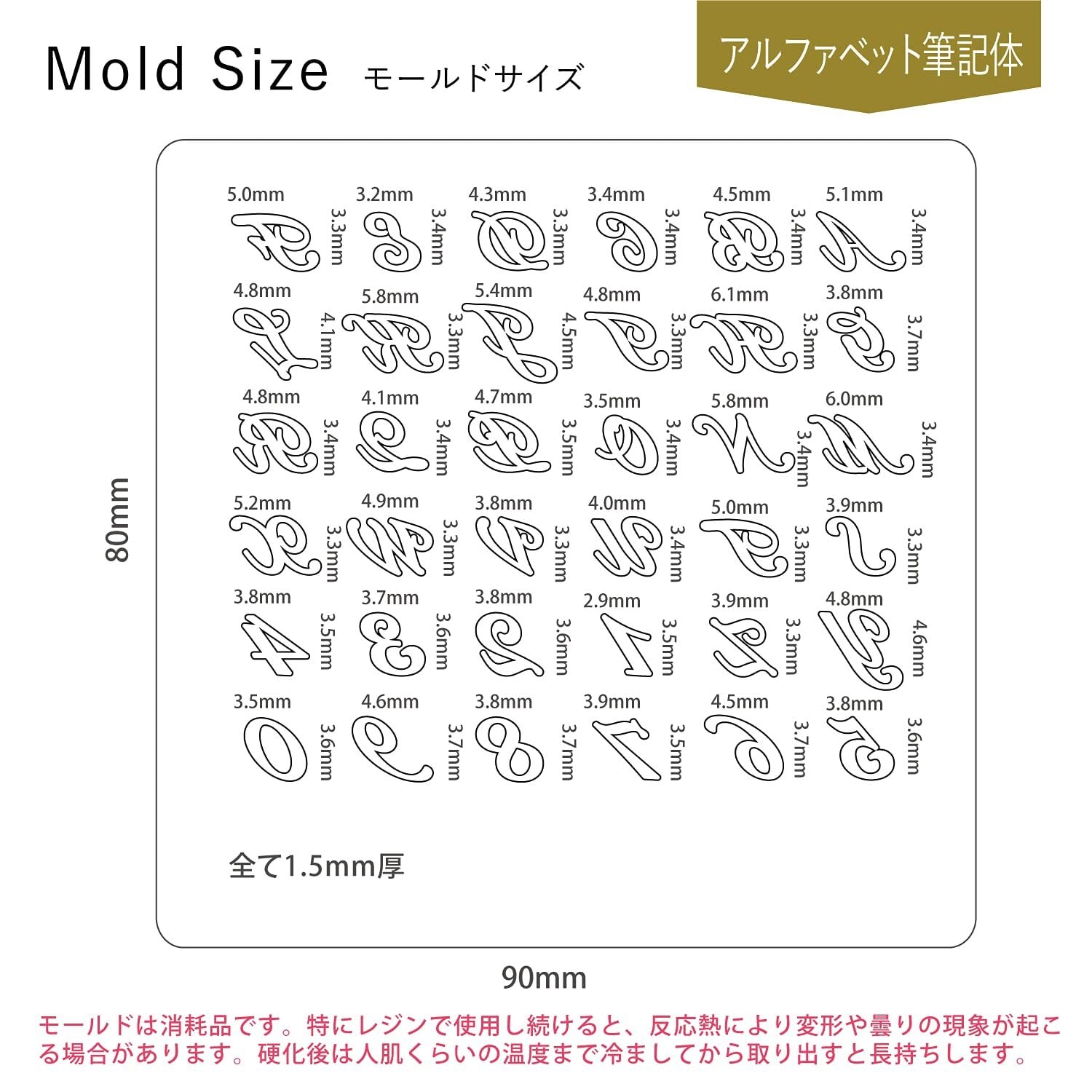 ・型の内容:アルファベットA~Z 数字0~9