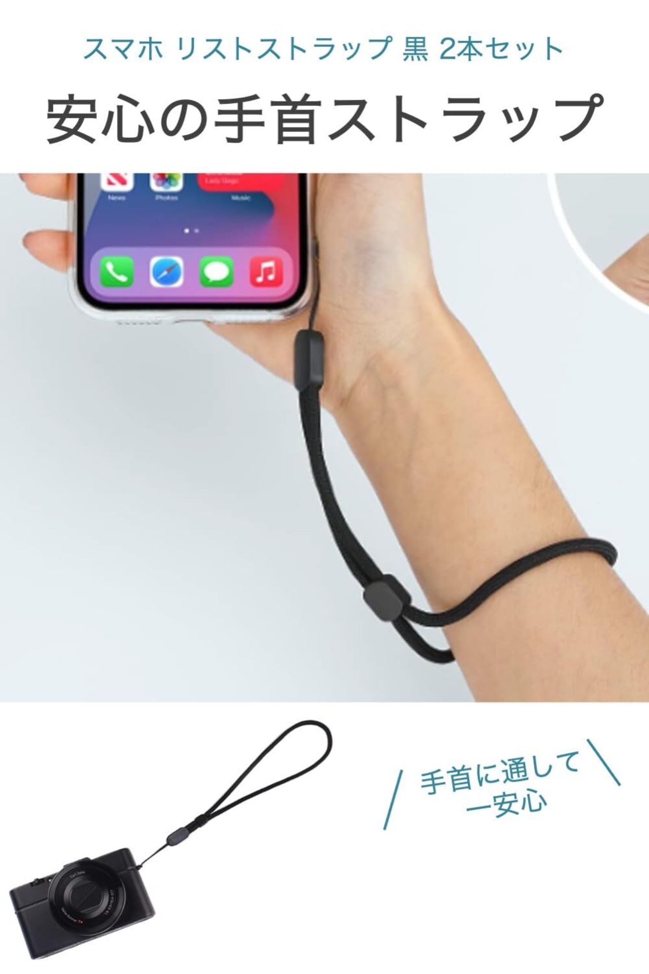 スマホ リストストラップ 黒 3本セット スマホやカメラの落下防止に 取り付け簡単 アジャスター付き