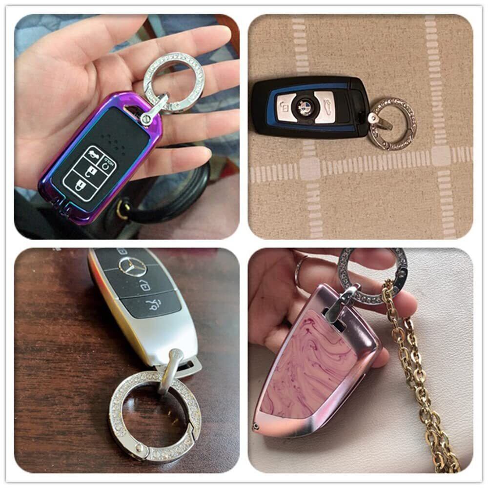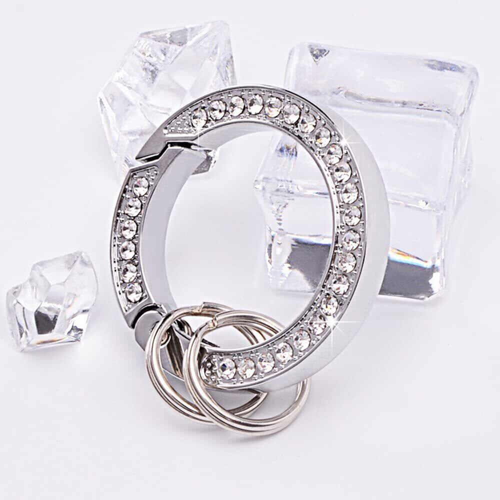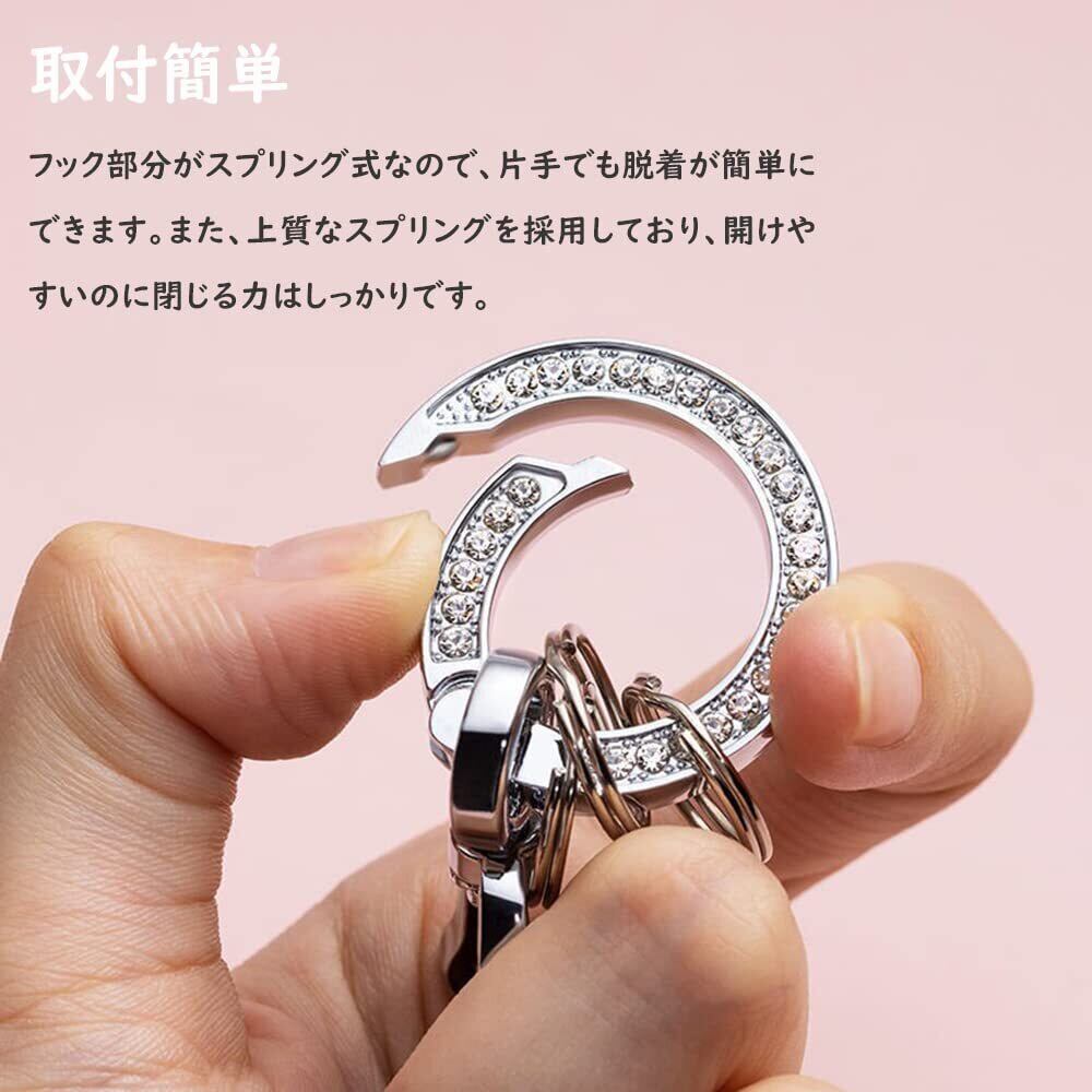 このキーホルダーは、サムコスブランドの高品質な製品です。丸型のデザインで、外径3.5cm、内径2.5cmのサイズで、2個セットになっています。亜鉛合金を使用し、防錆電気メッキ加工を施していますので、優れた耐久性があり、色褪せにくいです。模造ダイヤモンドとラインストーンのエレガントなデザインは、光にキラキラ輝きます。スプリングフック部分は片手でも簡単に脱着できます。クリスマスやその他の祝日に、親戚や友人への贈り物としても適しています。