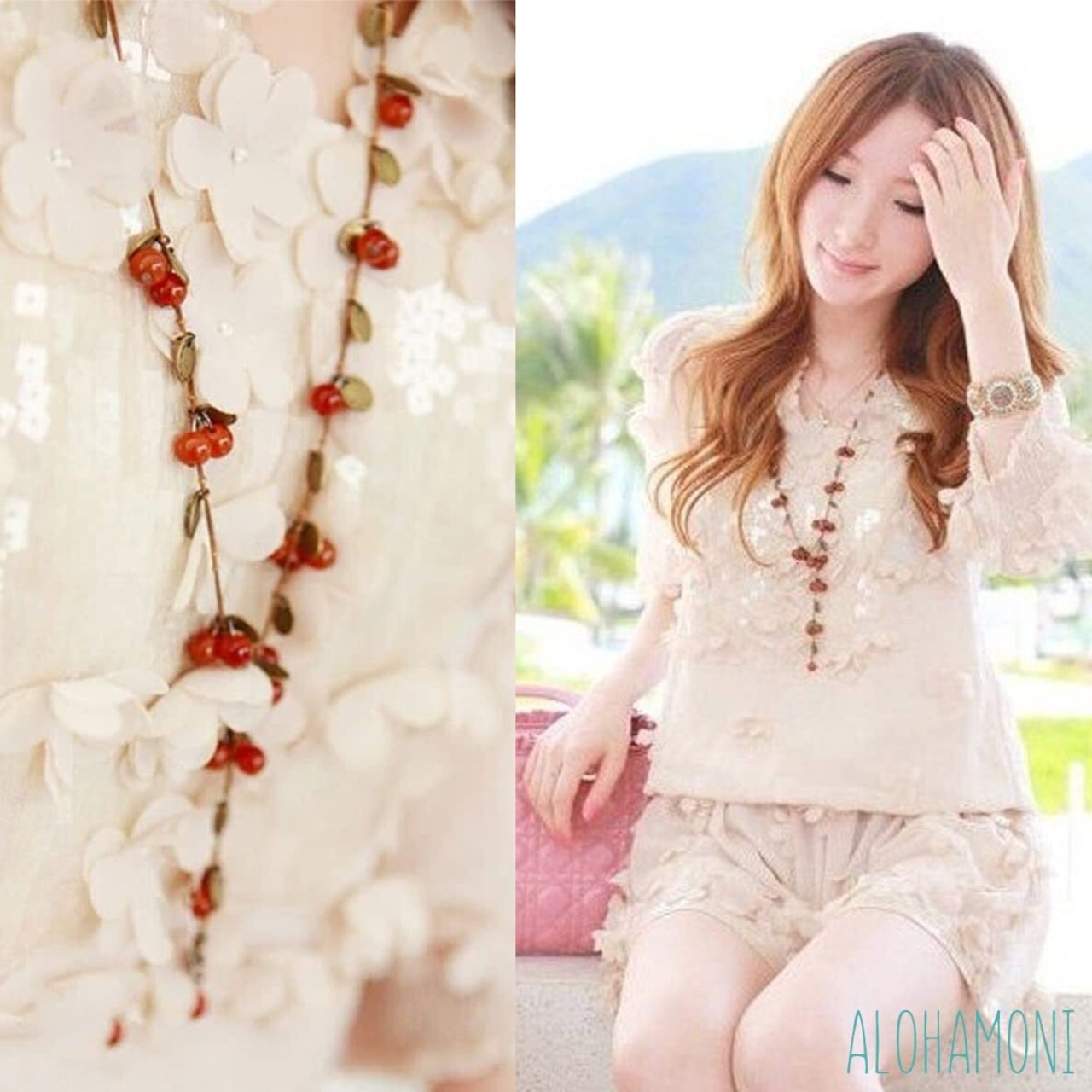■木の実がかわいいので、Tシャツ1枚で着るもよし、上にアウターを着てもよし、ワンピースやリゾートスタイルにも合います