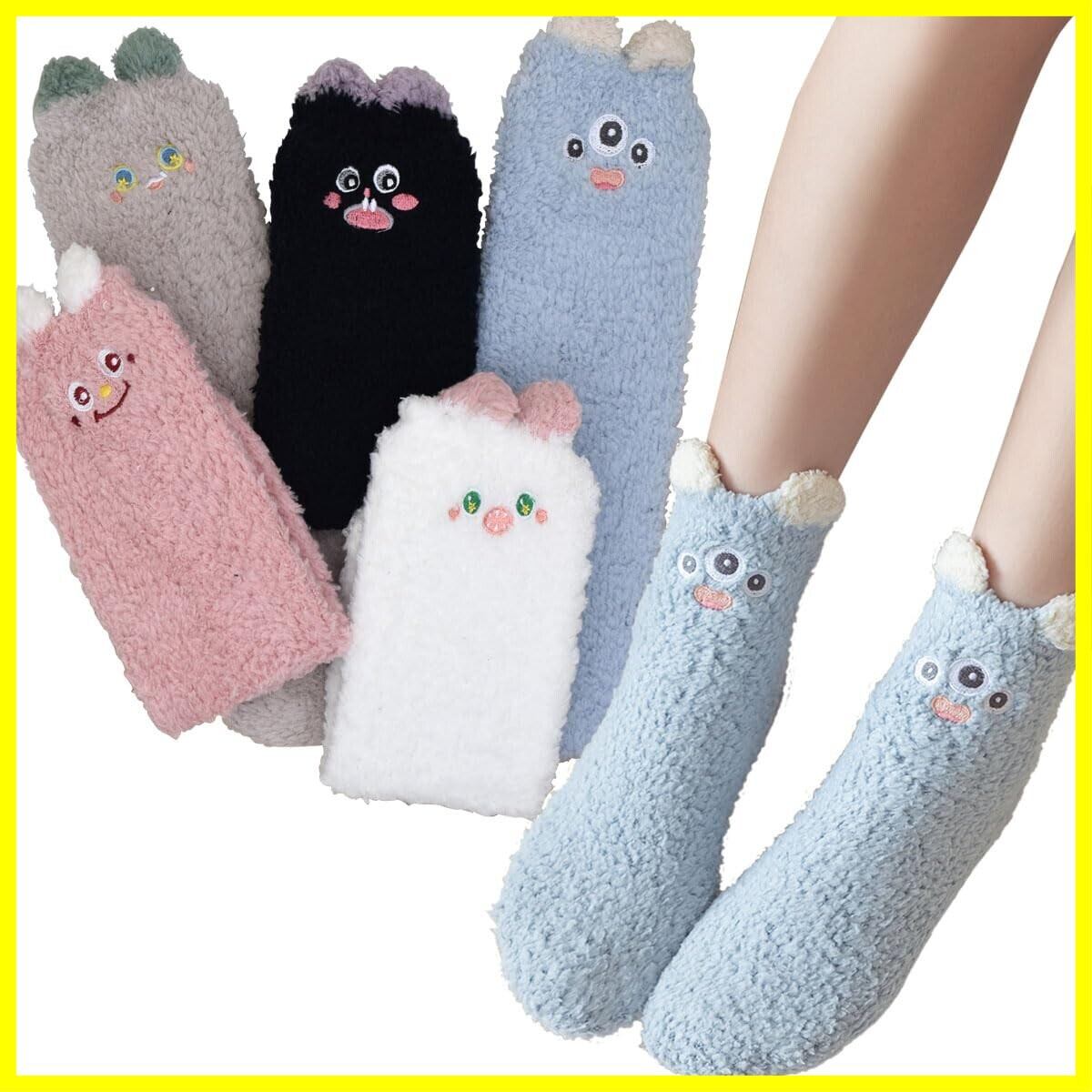 Sandy Ting「5足セット」レディース 厚手 防寒靴下 もこもこソックス ふわふわ 裏起毛 可愛い ぽかぽか 女性 冬 冷え対策 暖かい ショート 睡眠 22-25CM