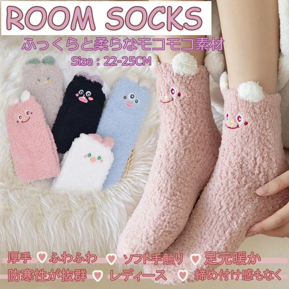 4.発熱ぽかぽか素材で足元冷え性さんには特におすすめ!優れの保温性と柔軟性を持ち、ふわふわっと厚手のコーラルフリース素材のルームソックス。モコモコとした素材で、足元を優しく包み込みます。ふんわりとしたスポンジのような、一度味わったら離れられない、驚きの柔らかさです。暖かっぽくも可愛らしくもコーディネートが楽しめます!優れの保温性と柔軟性を持つ秋冬に最適の上、通気性もあり、履き心地はとても良いです。これは非常に柔らかいもふもふ素材なので、人々は圧力のいずれか感じることなく、とてもリラックスしています。