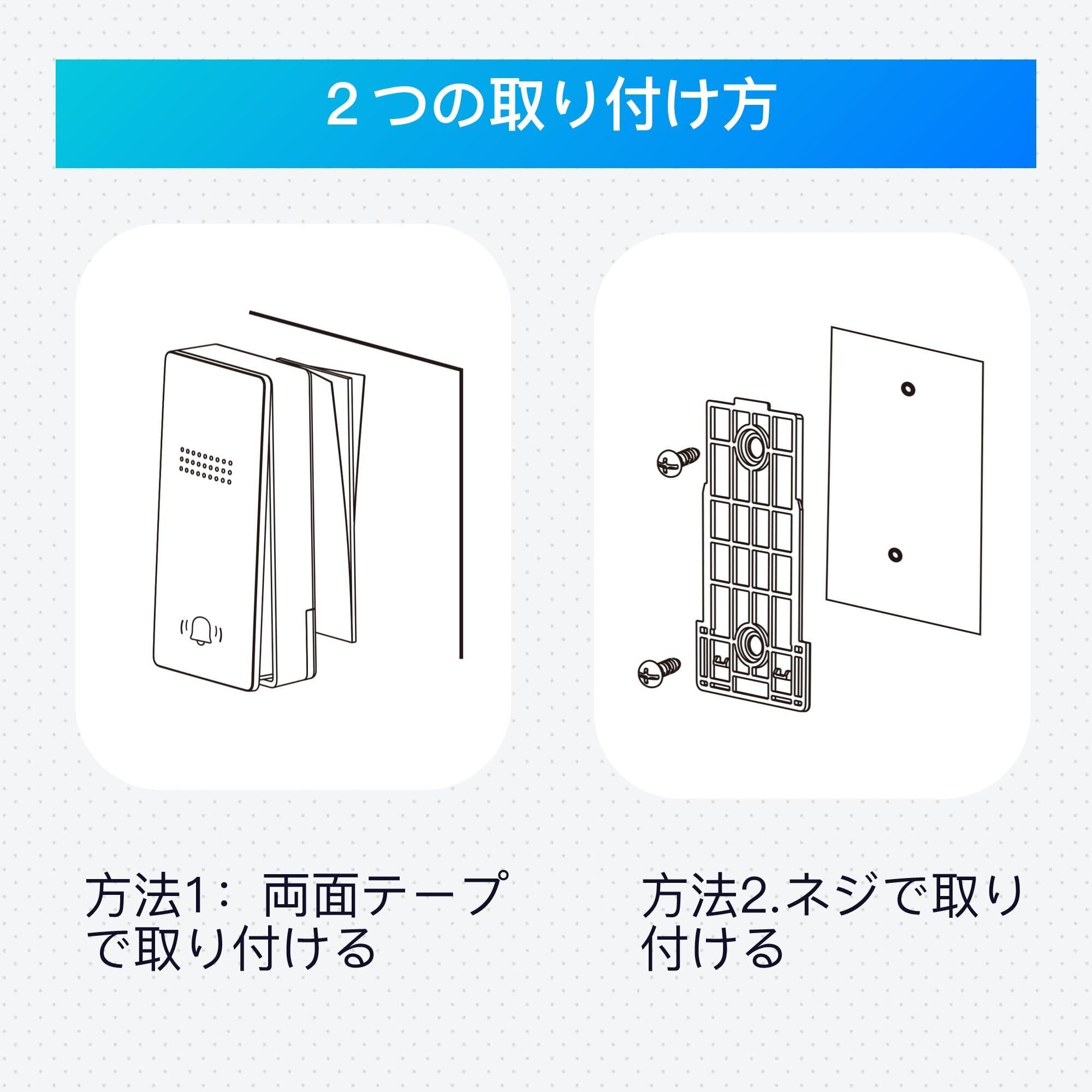【安定受信&記憶機能】このドアチャイムは高感度の受信機を採用して、壁を通して安定的に受信することができます。屋内での使用はもちろん、2階建てでの使用も可能です。 曲を記録できるメモリー機能付き、場所を変えて使うときは繰り返し作業をしなくて使いやすいです。
