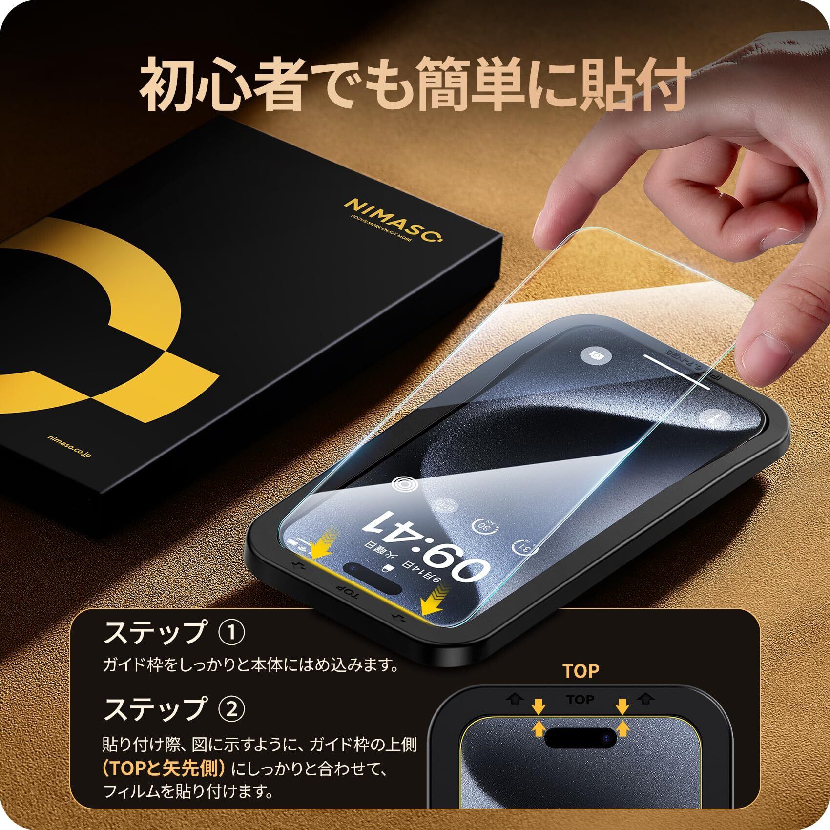 NIMASO ガラスフィルム iPhone15ProMax用 強化ガラス 保護フィルム ガイド枠付き 2枚セット アイフォン15プロマックス対応(6.7インチ) NSP23H769