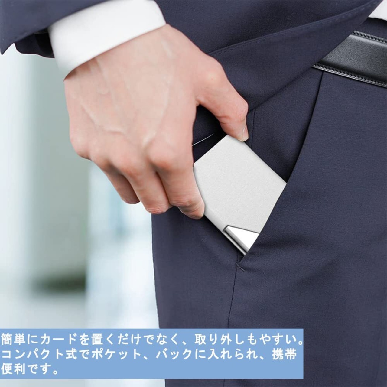 【サイズと容量】9.5×6.3×1.3 cmの名刺入れで、名刺の厚さにより15~20枚ぐらいの名刺が受け入れ。