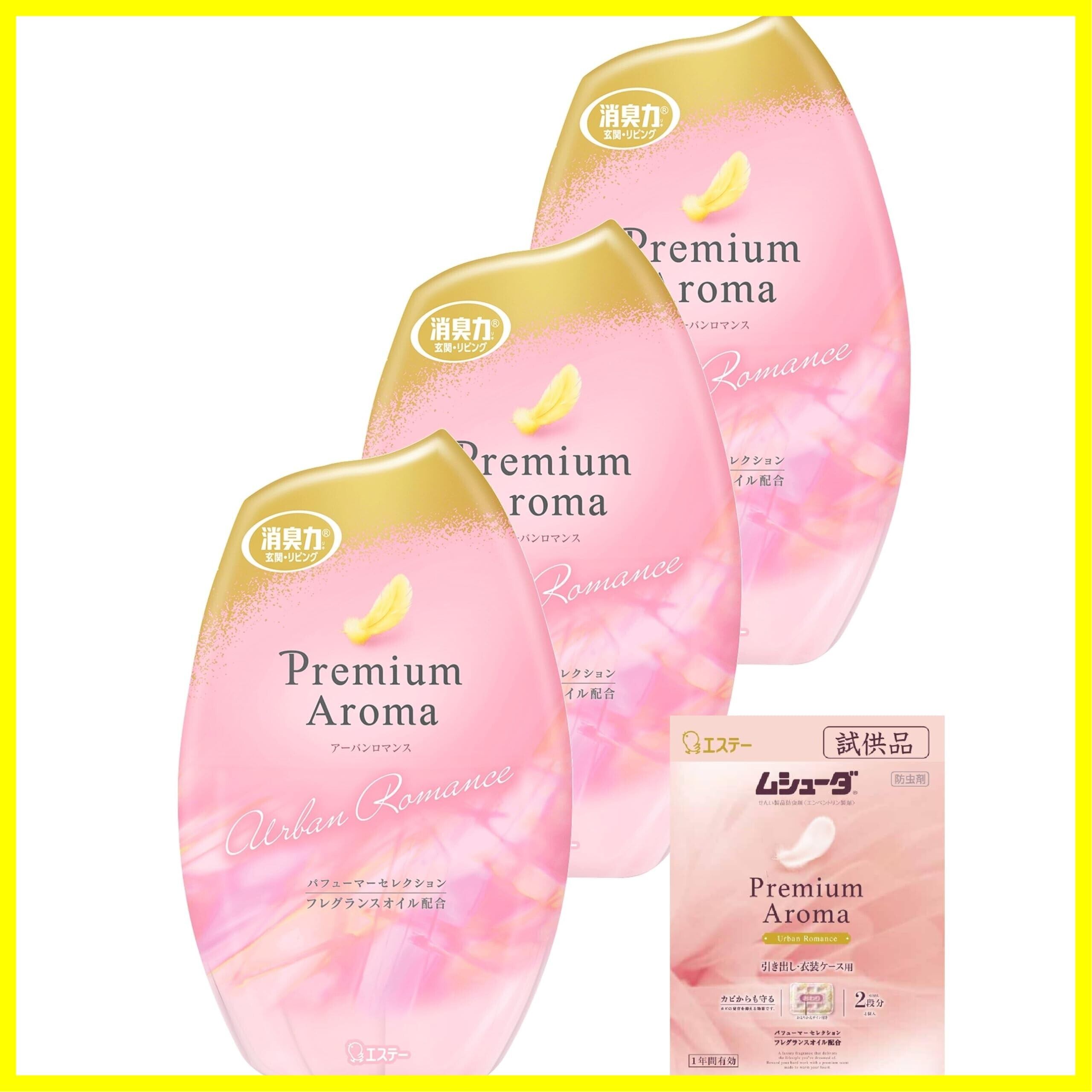 消臭力 プレミアムアロマ [ 限定] 部屋用 置き型 アーバンロマンス 400mL×3個 + ムシューダ 引き出し用試供品(2段分) お部屋の消臭力 玄関 リビング 寝室 ルームフレグランス 消臭剤 消臭 芳香剤 まとめ買い