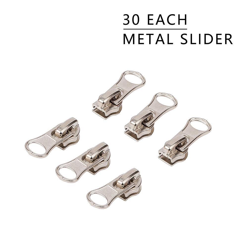 BENECREAT#5 長さ9mカラフルナイロンファスナーテープ 30個引手付き スライダー交換 ジッパー修理 服装 バッグ ジッパー交換 修理キット 裁縫