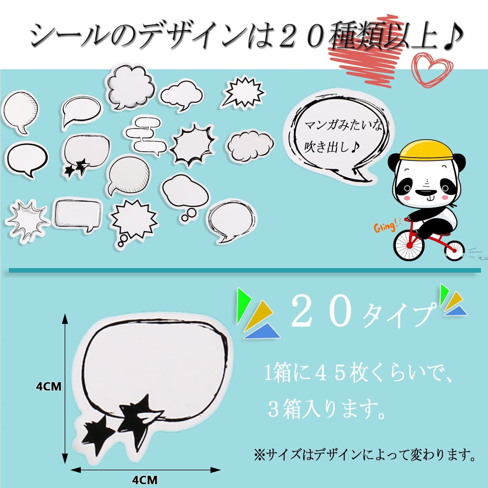 漫画風のふきだし風ステッカー135枚入ります。3箱のセットです、1箱に45枚があります。容量が豊富で、十分に使えます。