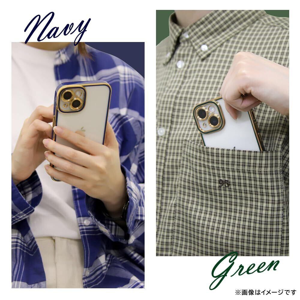 iPhone15 Pro ケース クリア メタル フレーム カメラ保護 耐衝撃 メッキ加工 ストラップホール 付き アイフォン 15 プロ カバー/グリーン/ゴールド