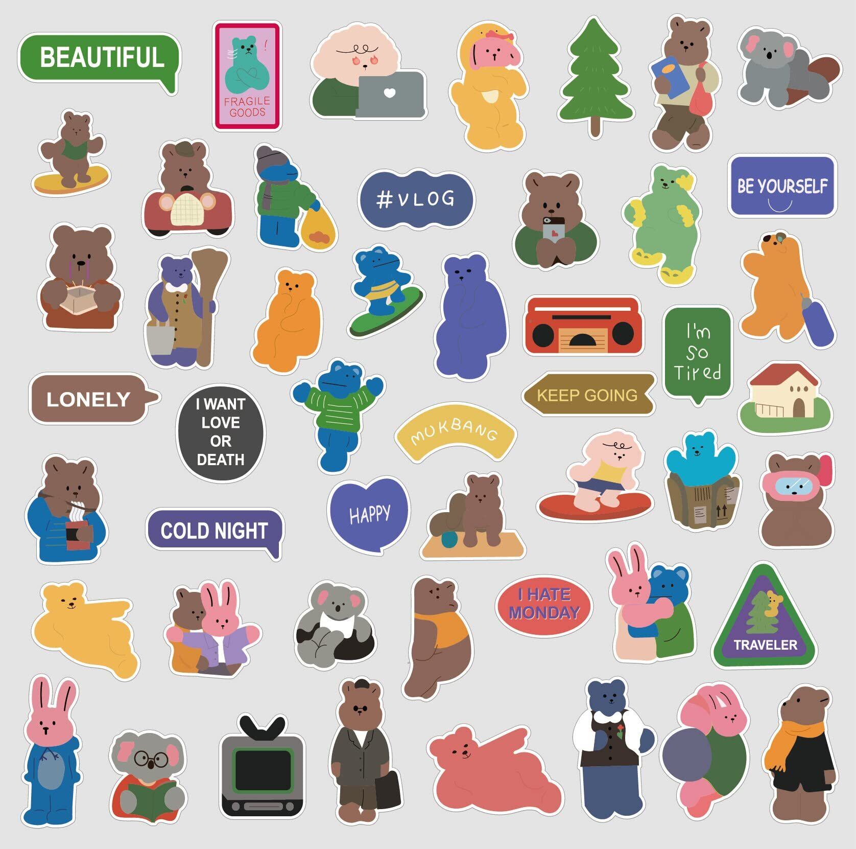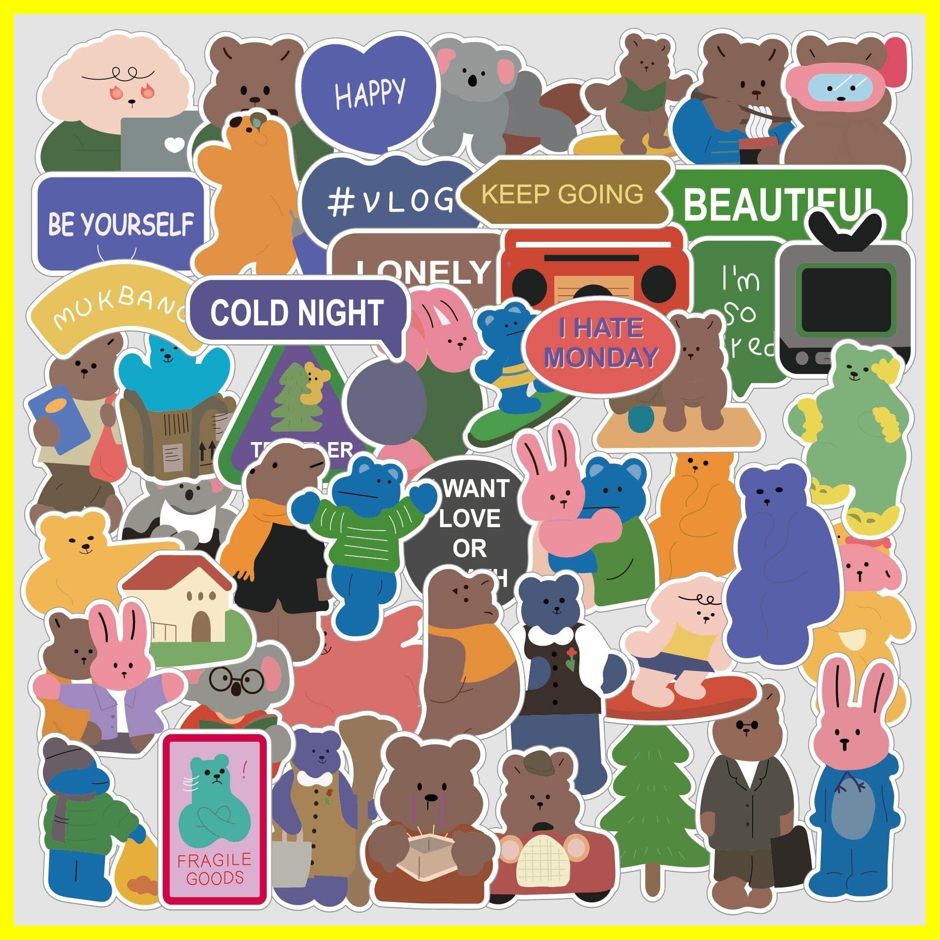 とても面白いステッカーセットで、クマ、ミルク、クッキー、イチゴ、ウサギ、花、瓶、電話、アイスクリームなど、かわいいキャラクターがたくさん揃っています。