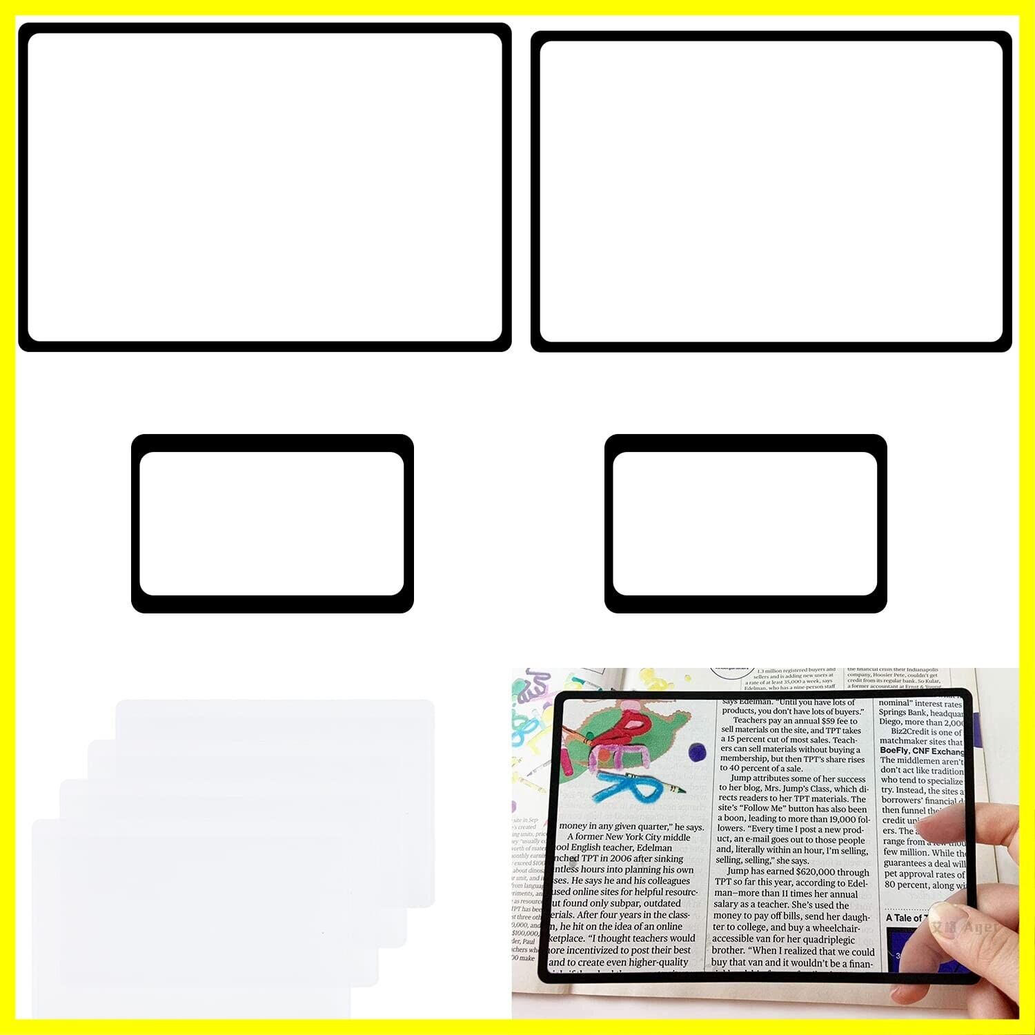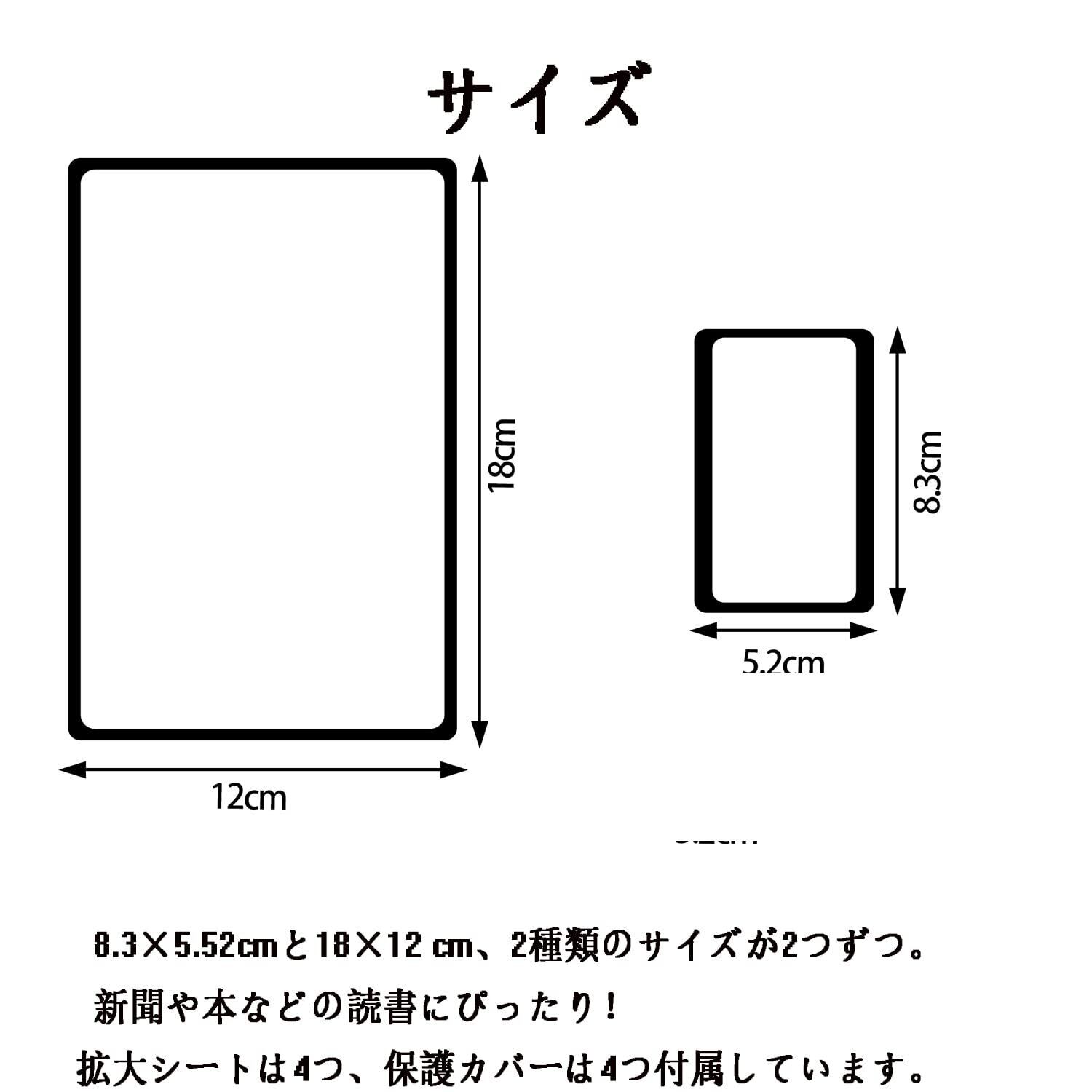4枚 カード拡大鏡 ページ拡大シート 3倍拡大 虫眼鏡 カードルーペ 超薄型 ページ拡大レンズ 見やすい 軽い 読書ルーペ (8.5×5.5 cmと18×12 cm)