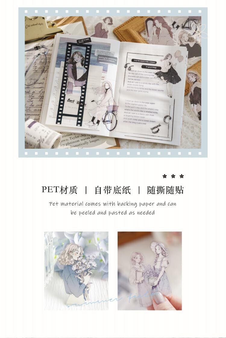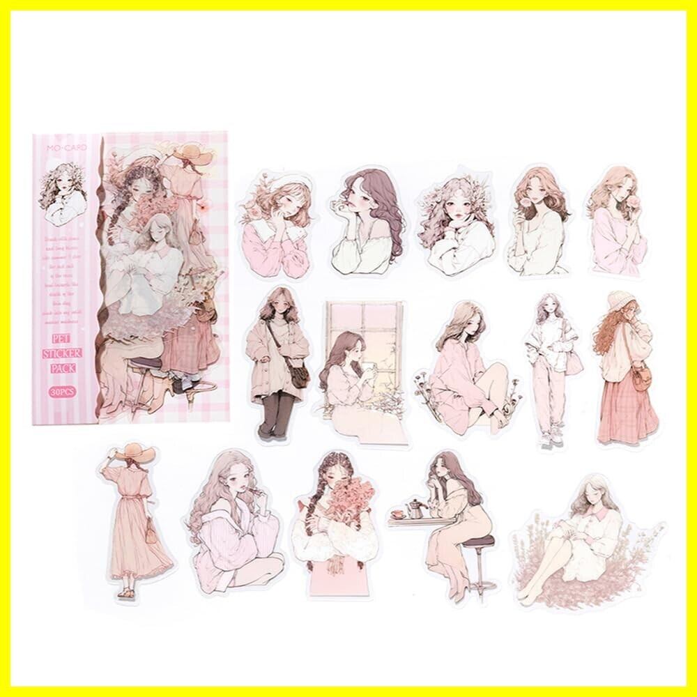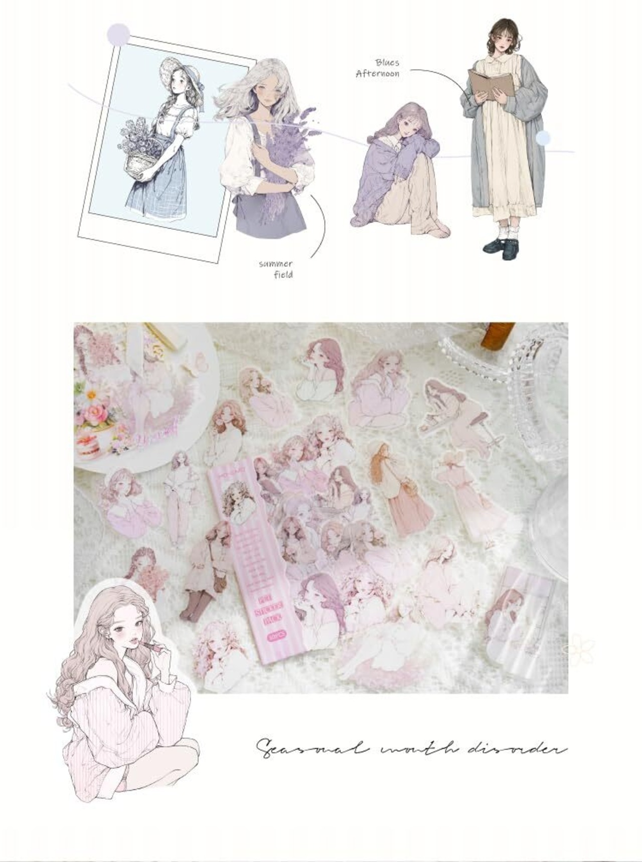 60枚 シール フレークシール コラージュ 素材 ペーパー 素材紙 レースユートピアステッカーレトロファッショナブルな女の子たち海外韓国 シール帳 ,メモ用紙ノート素材、日記装飾用品 (mianmianfuxia)
