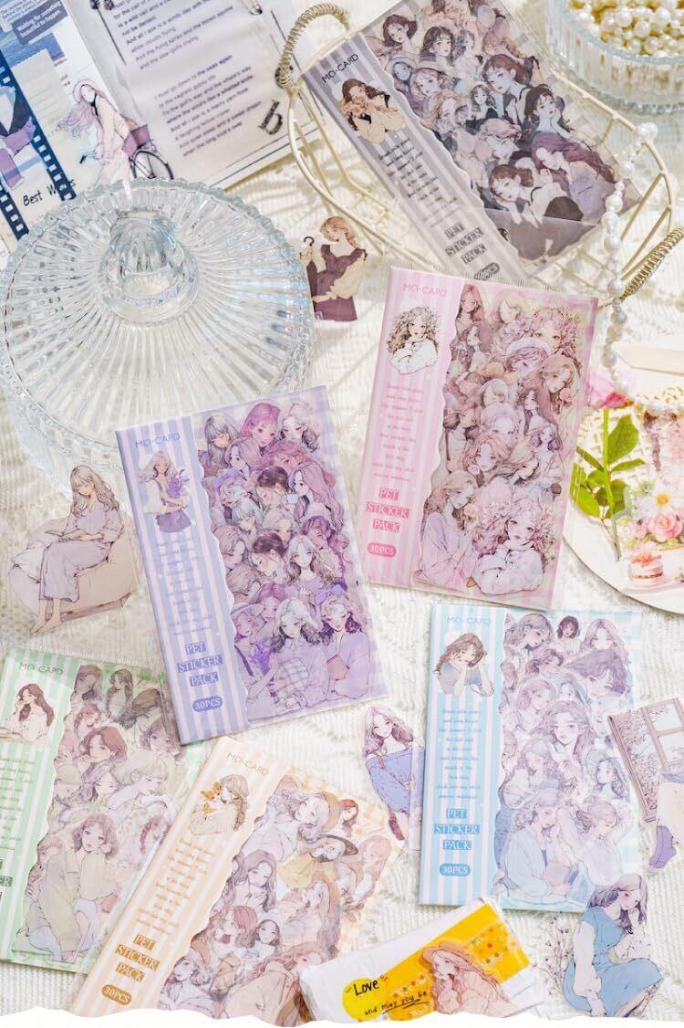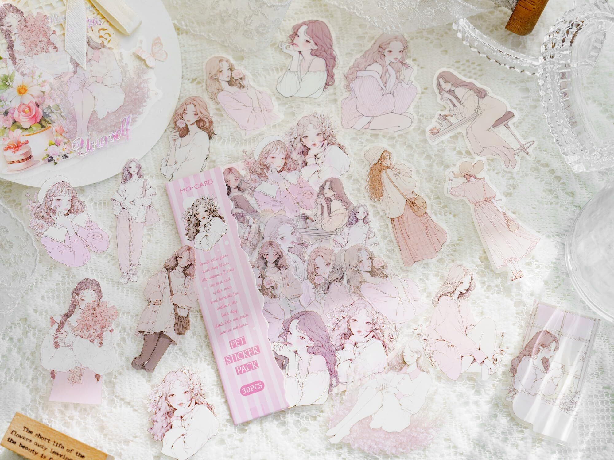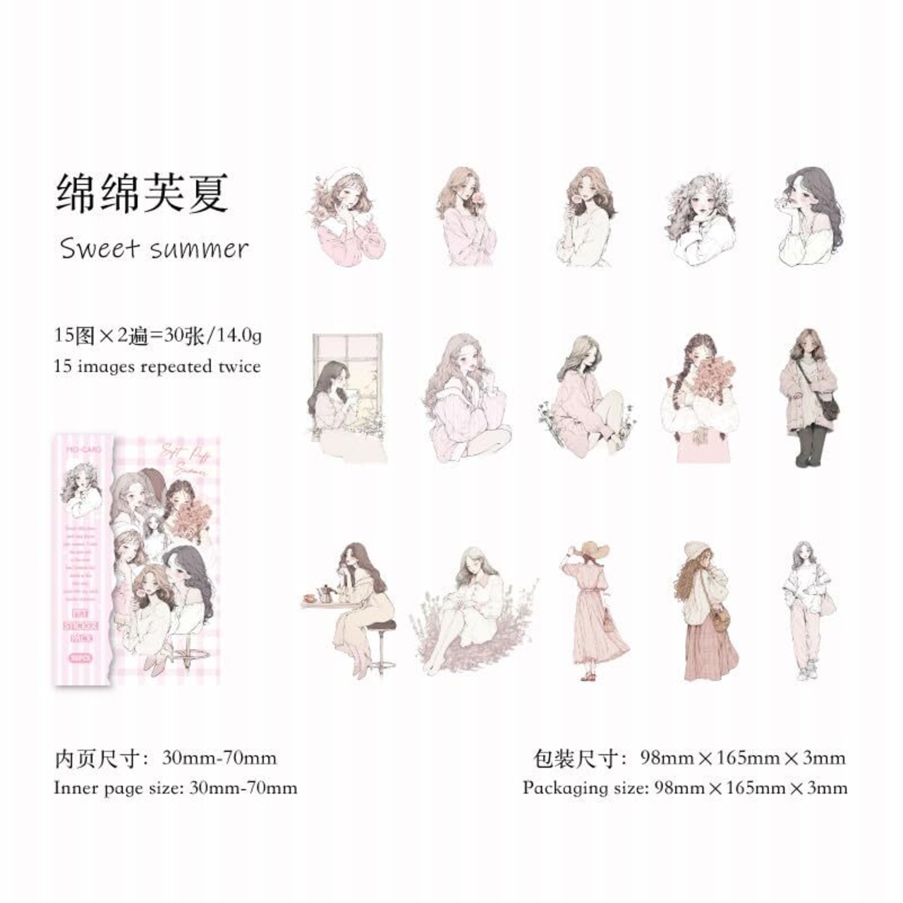60枚 シール フレークシール コラージュ 素材 ペーパー 素材紙 レースユートピアステッカーレトロファッショナブルな女の子たち海外韓国 シール帳 ,メモ用紙ノート素材、日記装飾用品 (mianmianfuxia)