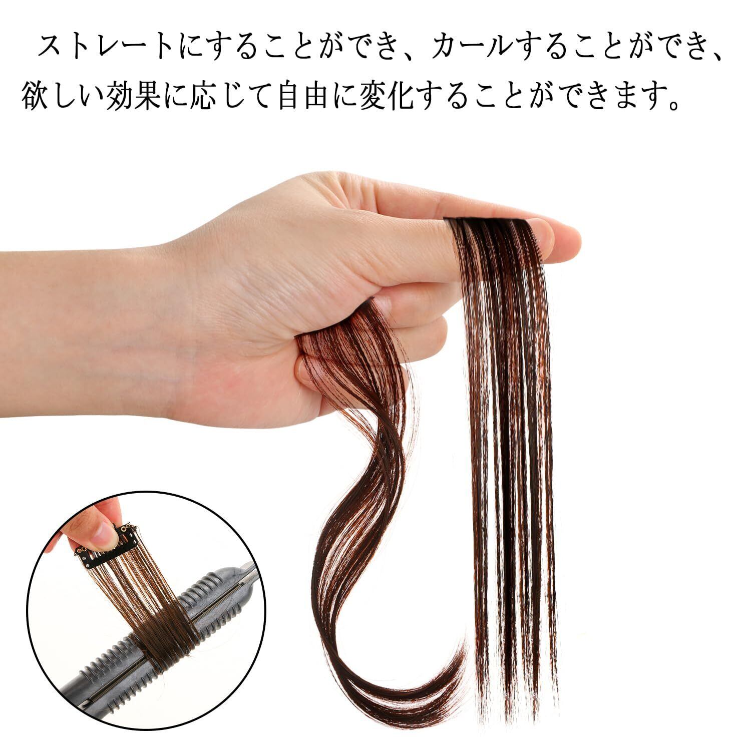 「髪を傷めない」前髪ウィッグをストレートにしたり、カールさせたりすることができます。自分に合った長さにカットすることもでき、自分の髪を傷つけることはありません。