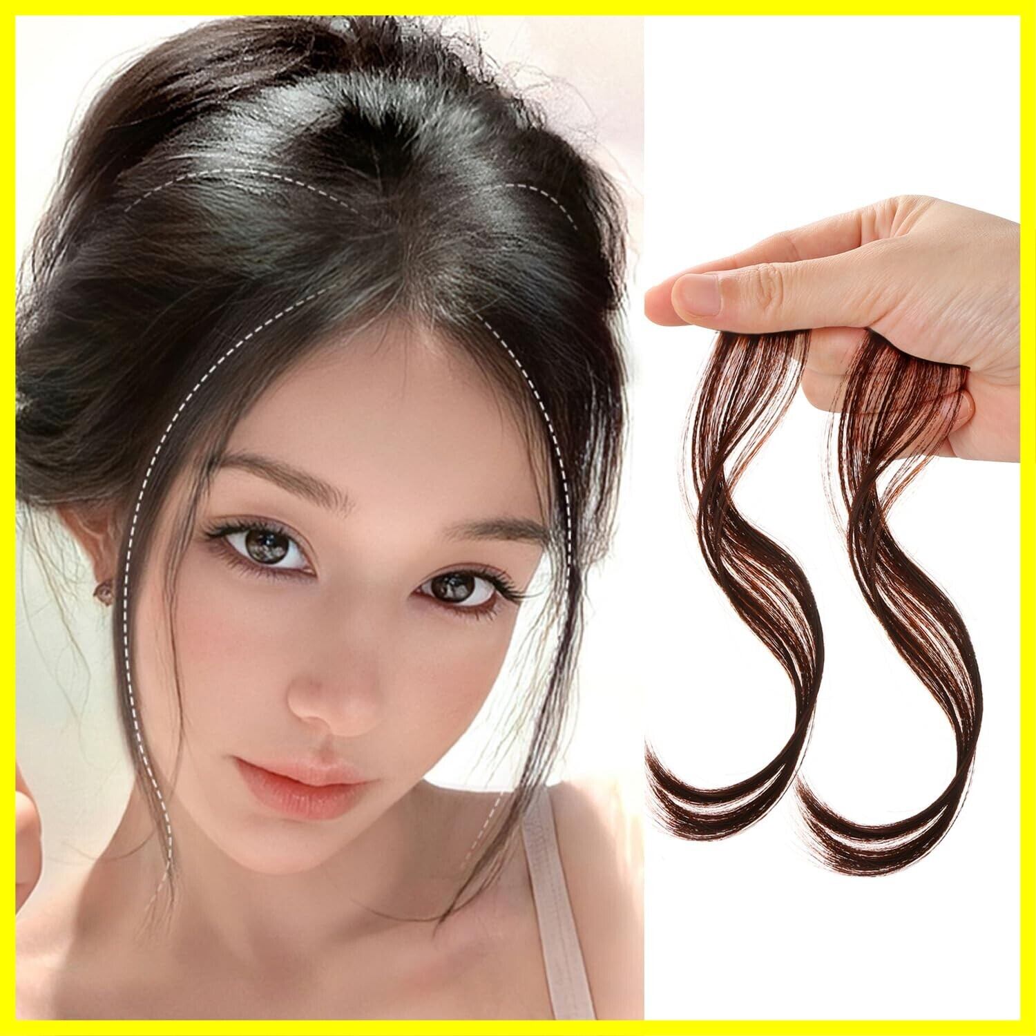 前髪ウィッグ センター分け ヘアエクステ 薄型 前髪 部分ウィッグ つけ毛 リアル 自然 前髪ウィッグ ヘアエクステ かわいい おしゃれ人気 軽量 ふわふわ カール つけ毛 髪の毛 付け髪 髪飾り 前髪ウィッグ 2枚セット (ブラウン)
