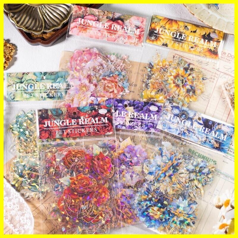 120枚 シール フレークコラージュシール レースユートピアステッカーレトロシェルレーザー 花 海外 韓国 シール帳 ,メモ用紙ノート素材、日記装飾用品 (conglinzhijing)