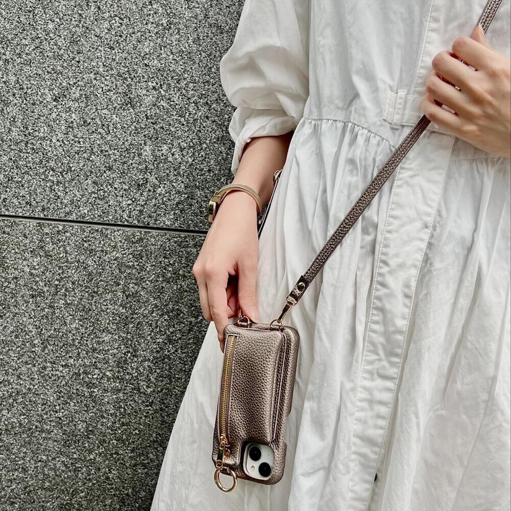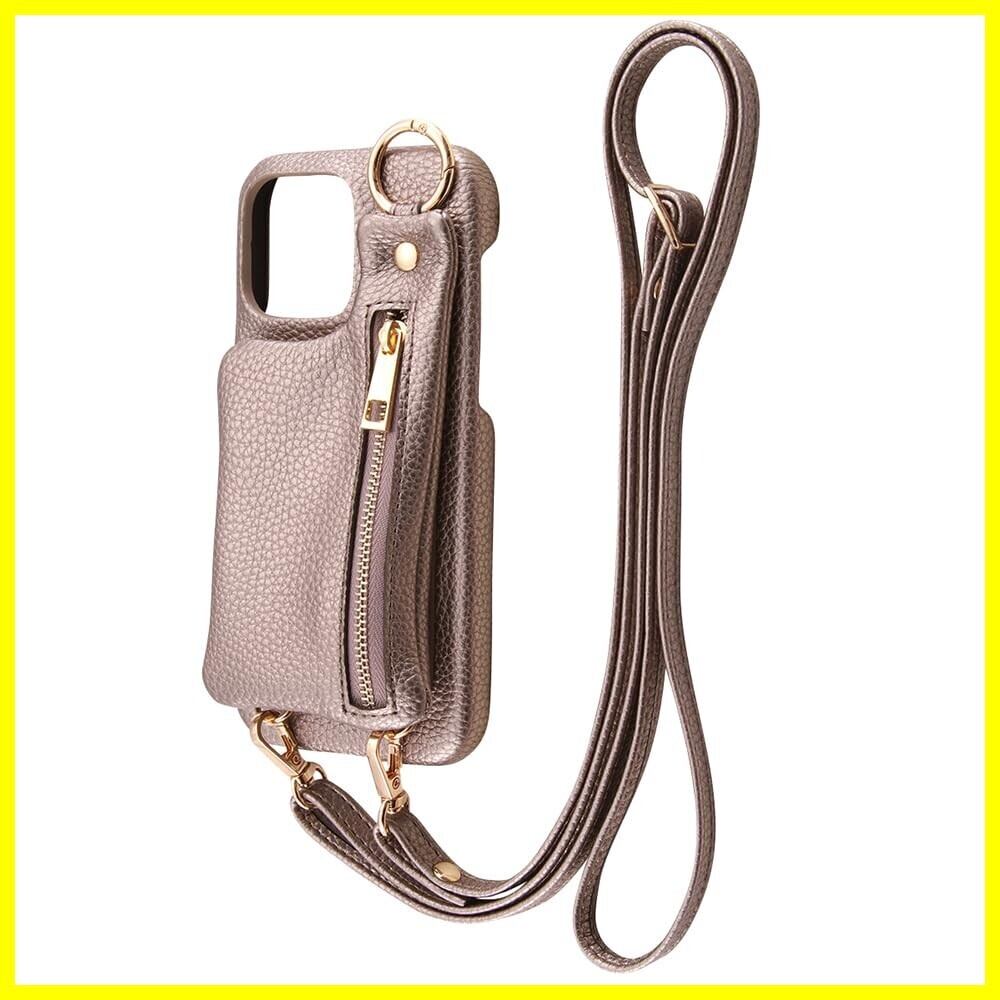 iPhone 15 Pro Max ケース オープンレザーケース ショルダーストラップ ポーチ付き m1n1 ブロンズ