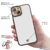 カメラやスピーカー周りまで精密に設計、背面・側面をしっかり保護 / アクセントにメッキ加工が施され高級感を演出 / 衝撃に強いTPU素材を採用、しなやかでケースの着脱もかんたん / 背面に虹色の干渉痕を抑えるマイクロドット加工を施工