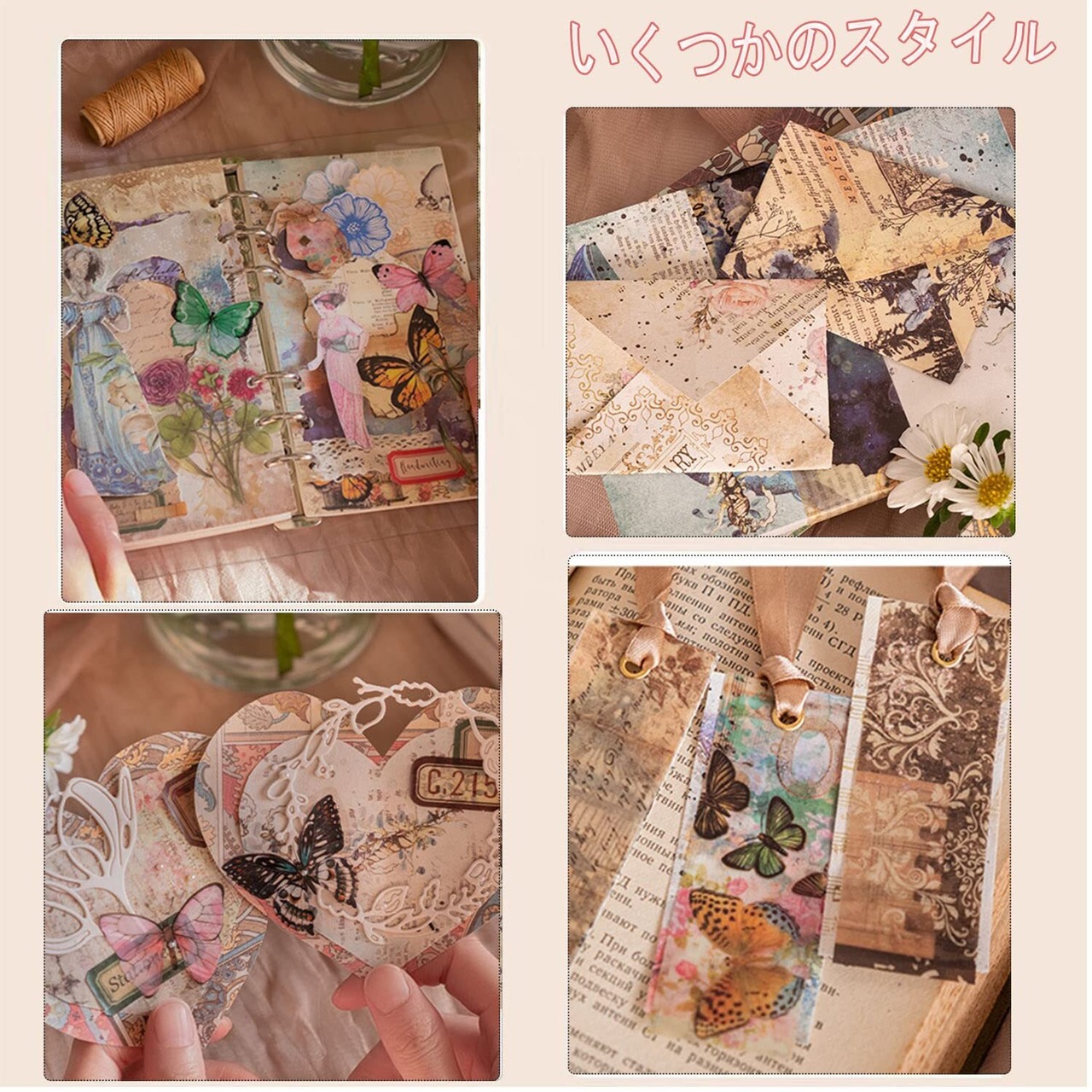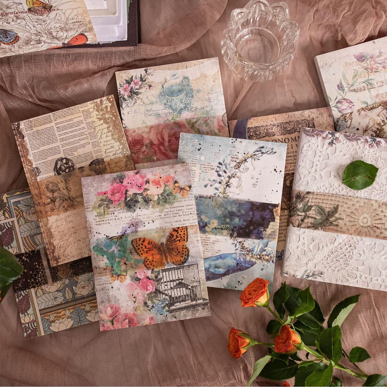 「適用シーン」素材紙のサイズは約10*14 cmです。コラージュ、ノート、日記、手紙、ギフト包装紙、アルバム、手帳、カレンダーなどに適した装飾紙です。