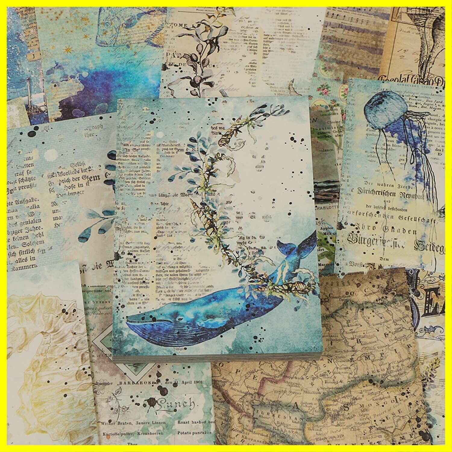 コラージュ 素材 デザインペーパー レトロ 素材紙 おしゃれ かわいい 両面印刷 手帳素材紙 花 風景 植物 背景紙 ギフト包装紙 アンティーク ヴィンテージ素材紙 コラージュ ノート 日記 カレンダー スケジュール 100枚 (海)