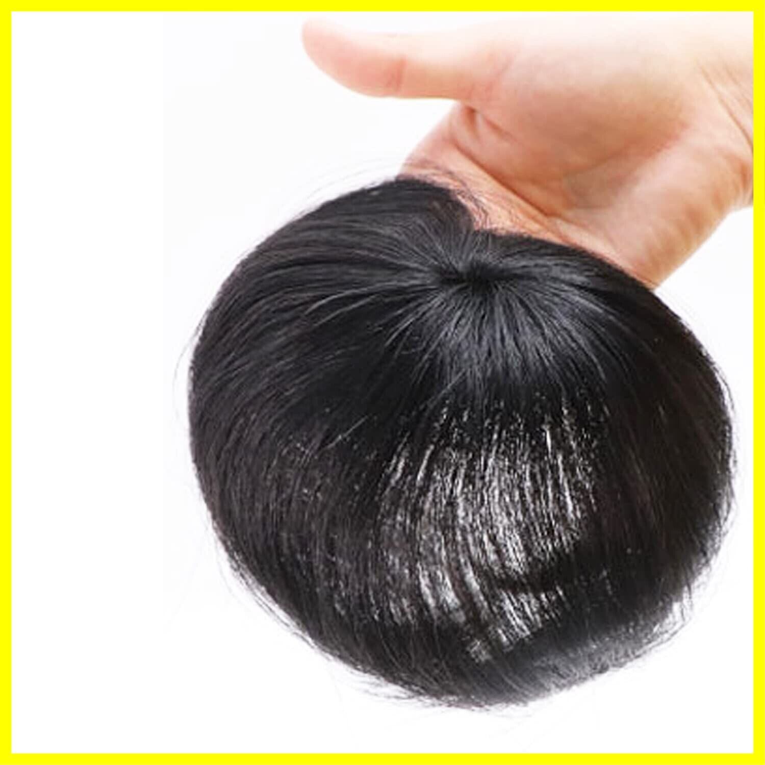 ヘアピース 頭頂部 人毛 ウィッグ かつら 女性 男性 つむじウィッグ 部分 ウィッグ 付け毛 トップピース ポイントウィッグ つむじカバー ストレート (ブラック、20 cm)
