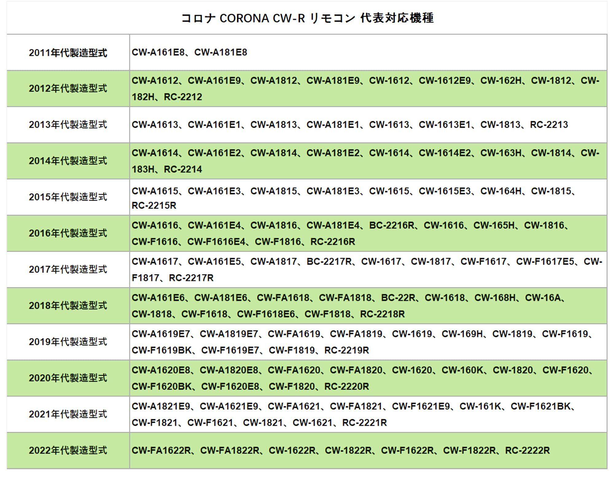 色 コロナ リモコン CW-R