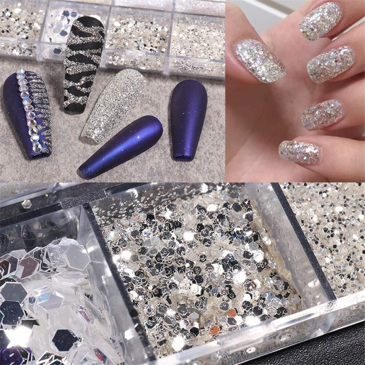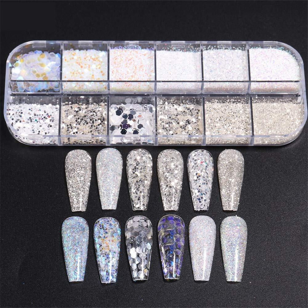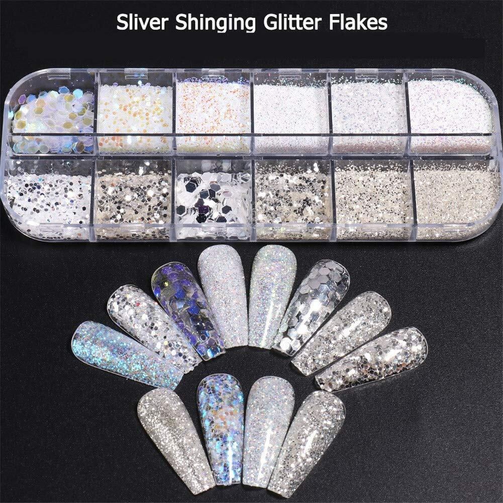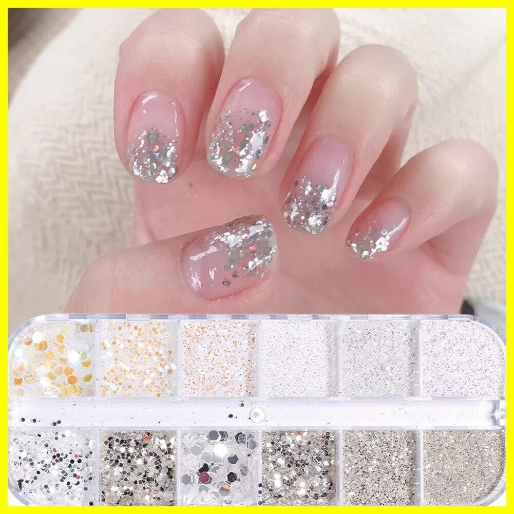 1ボックス 12パターン シルバー ホロ キラキラ輝く ネイルパーツ ネイルデコ ジェルネイル ネイルアート グリッター