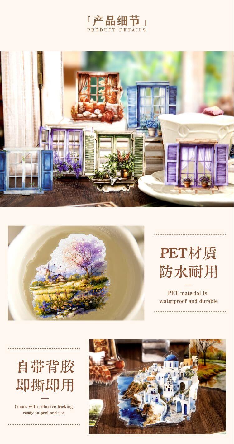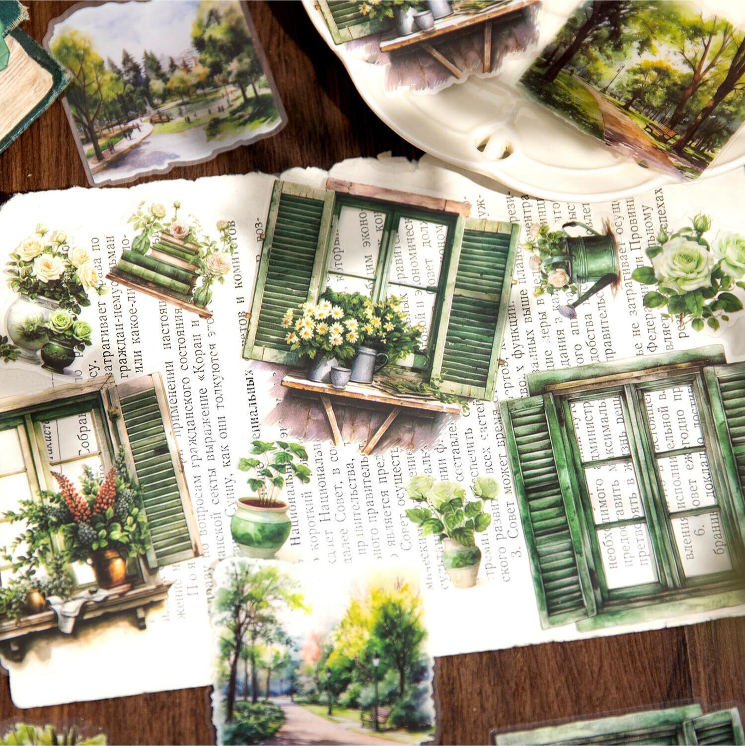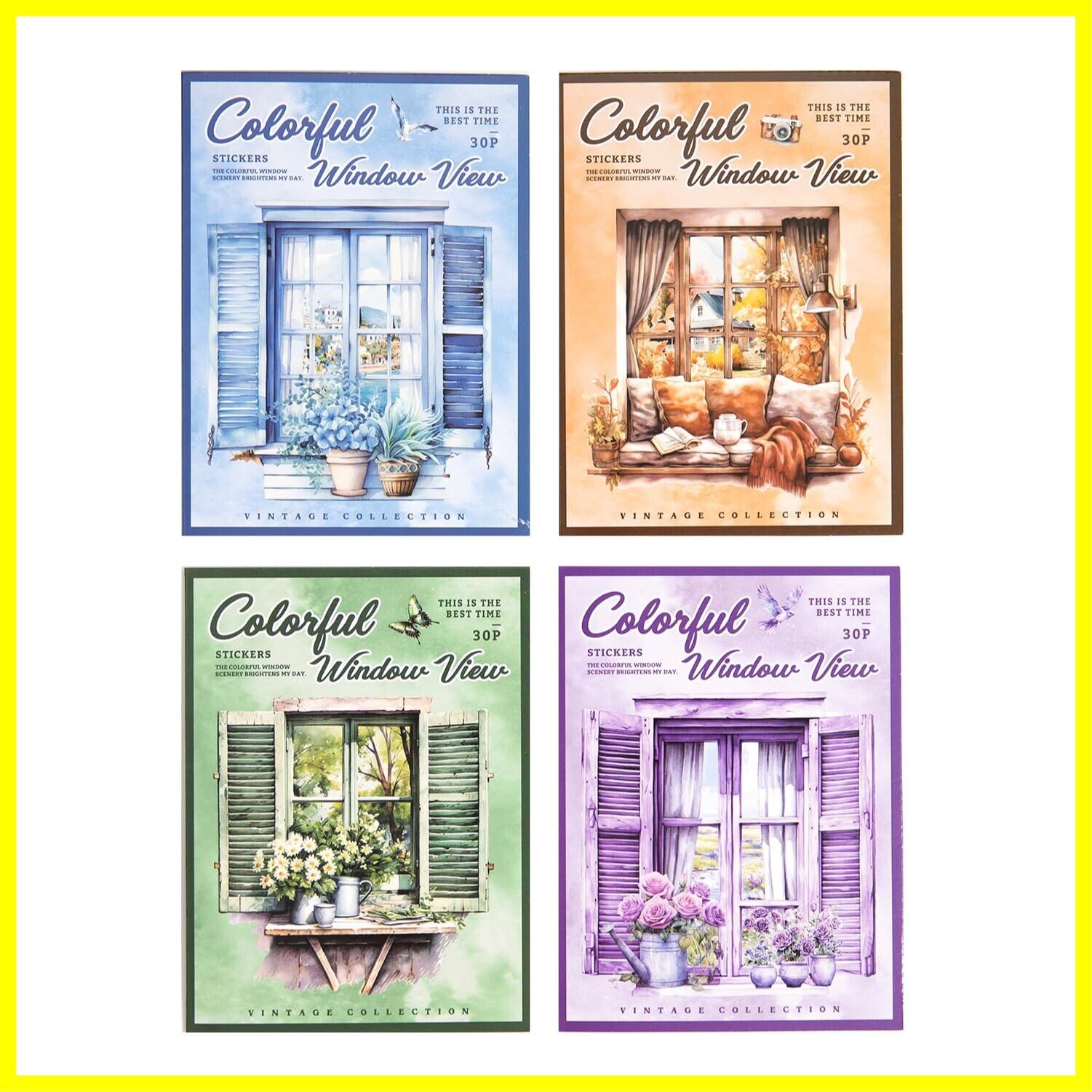 120枚 シール フレークシール コラージュ 素材 ペーパー 素材紙 レースユートピアステッカーレトロカラフルな窓からの眺め 海外韓国 シール帳 ,メモ用紙ノート素材、日記装飾用品 (duocaichuangjing)
