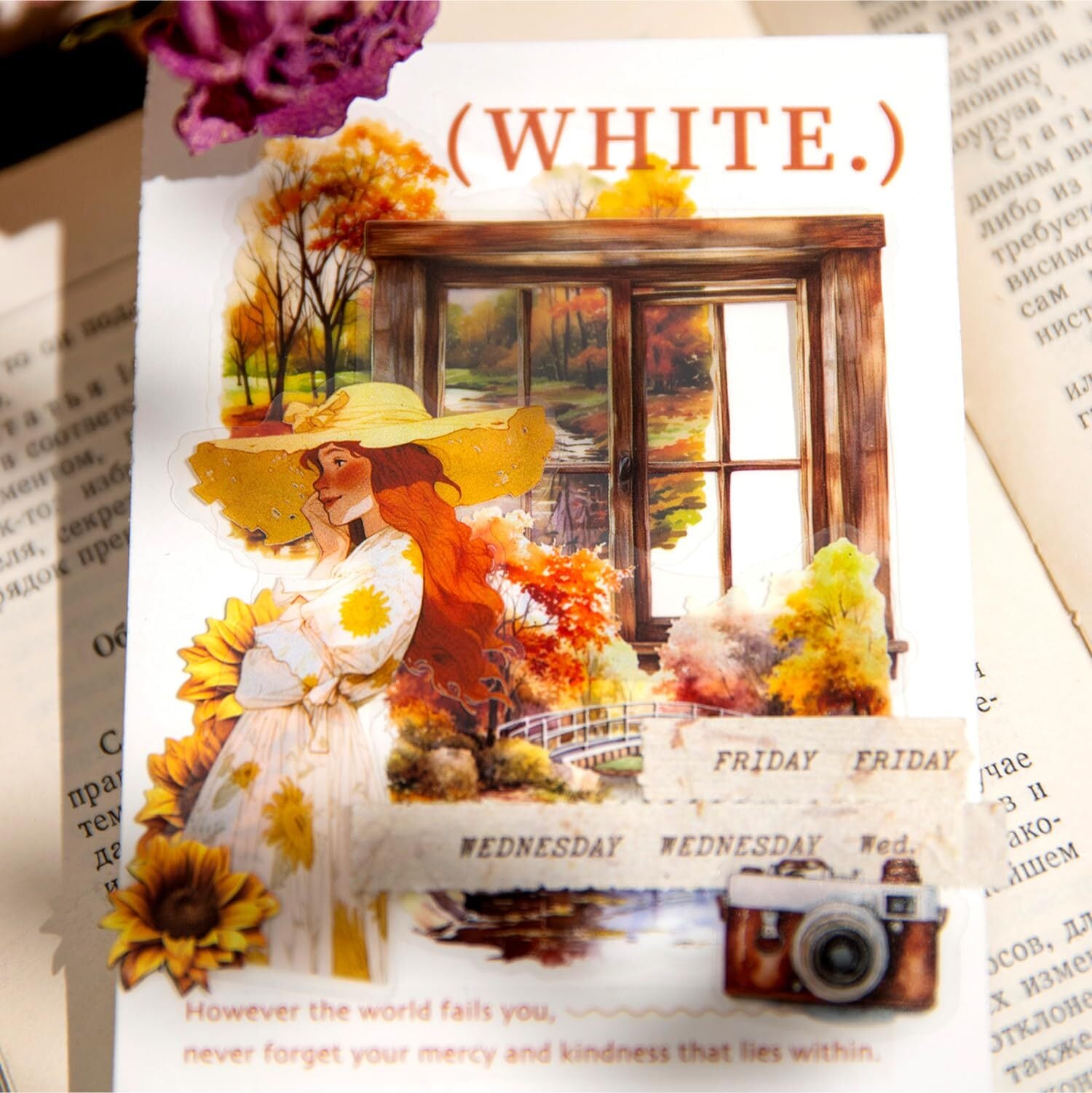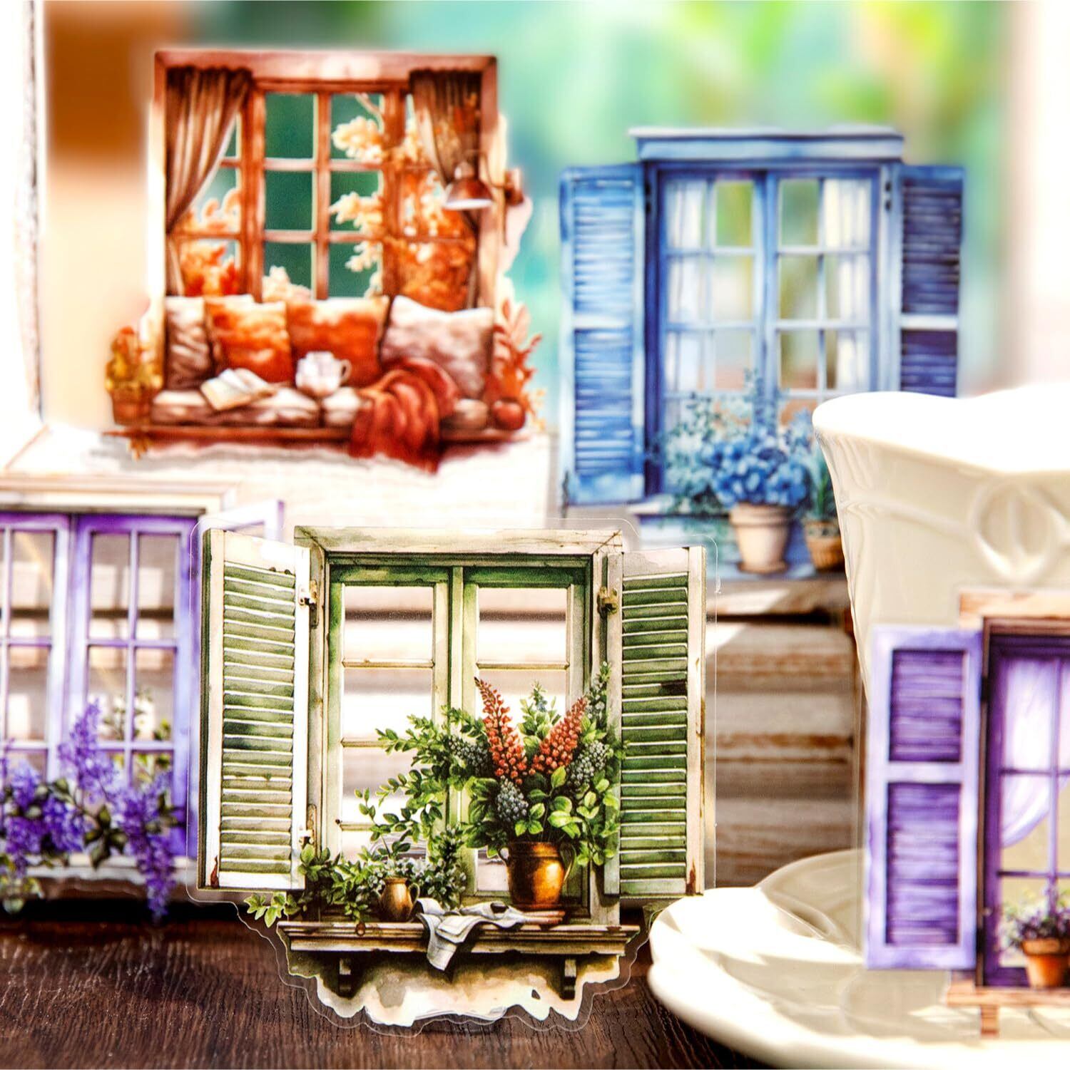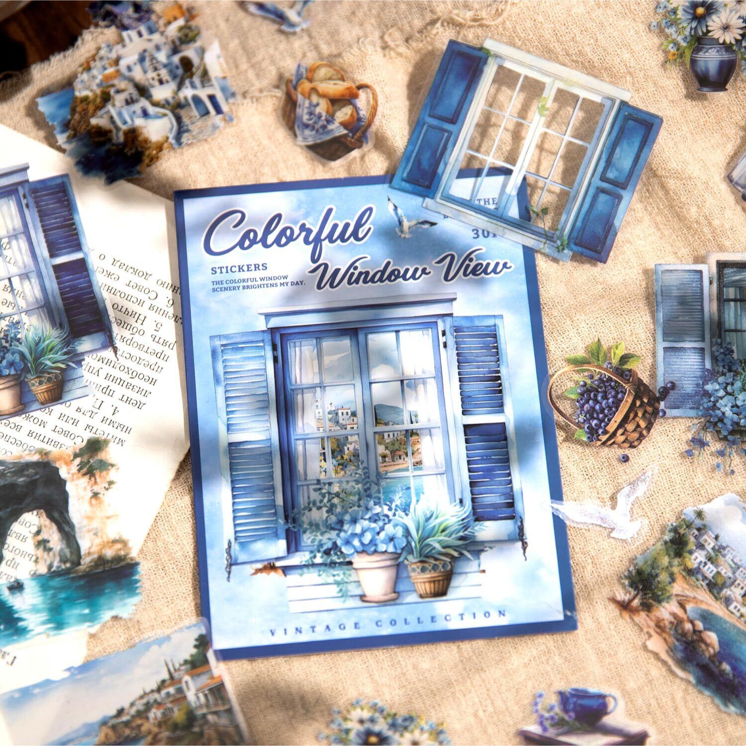 120枚 シール フレークシール コラージュ 素材 ペーパー 素材紙 レースユートピアステッカーレトロカラフルな窓からの眺め 海外韓国 シール帳 ,メモ用紙ノート素材、日記装飾用品 (duocaichuangjing)