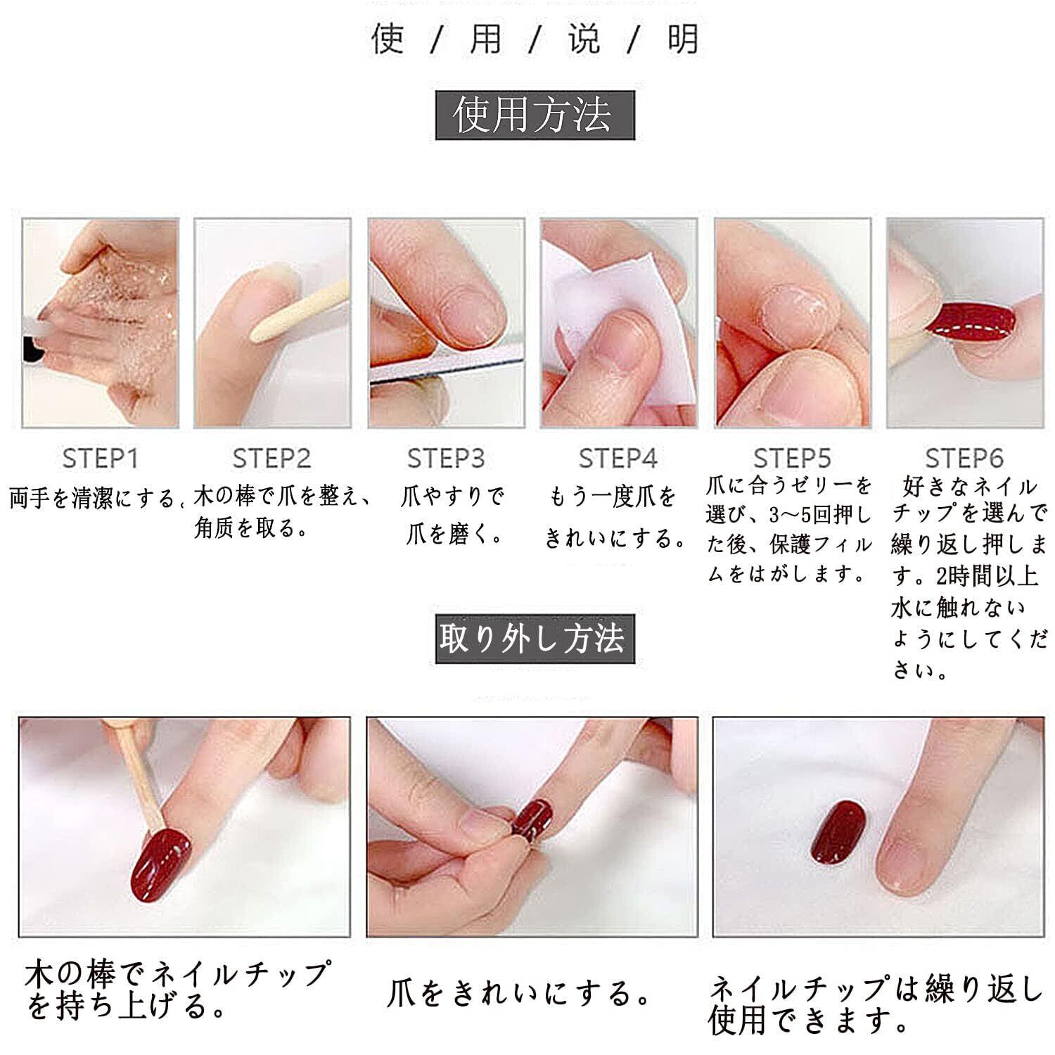 ネイルツールセット付き。セットには爪やすり、木の棒、ゼリーテープが入っています。