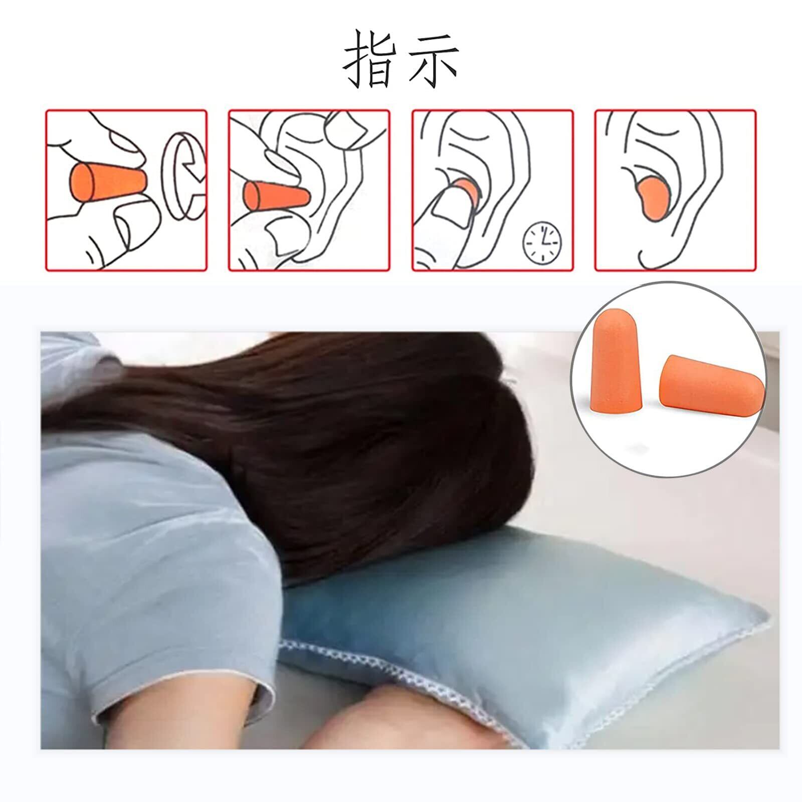 このソフトなフォームイヤープラグを使用の時、指先で丸めて、細くさせてから耳に入れます、60秒でゆっくり膨らみ、外耳道に完全に合わせることができます。