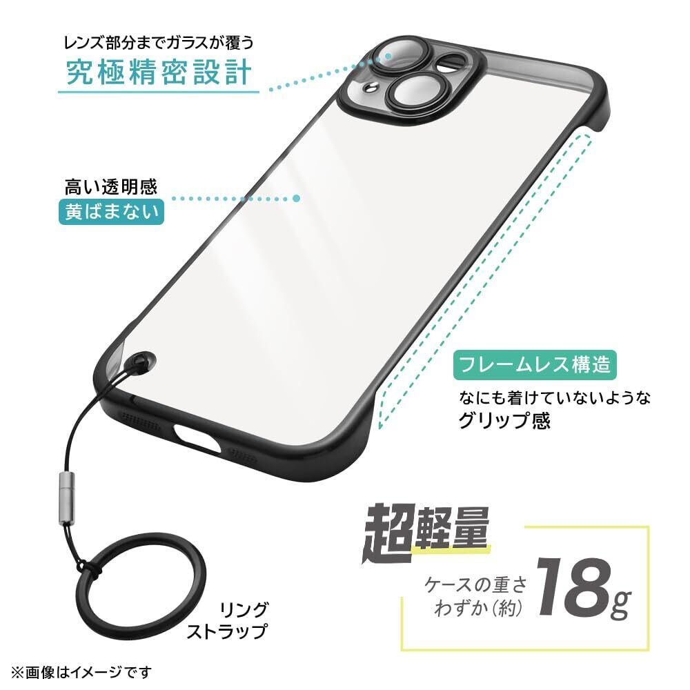 iPhone15 ケース クリア 極薄 軽量 フレーム無し 放熱設計 カメラ保護 メッキ加工 黄ばみ防止 ストラップ付き アイフォン 15 カバー/クリア