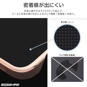 サイド部分のフレームを無くし軽量、極薄を実現。ケースを付けてることを感じさせないエアフレーム設計 / 気になるカメラ部分や四つ角はしっかり保護 / ストラップ付きで安心 / 放熱性も高く、ゲームユーザーにも最適