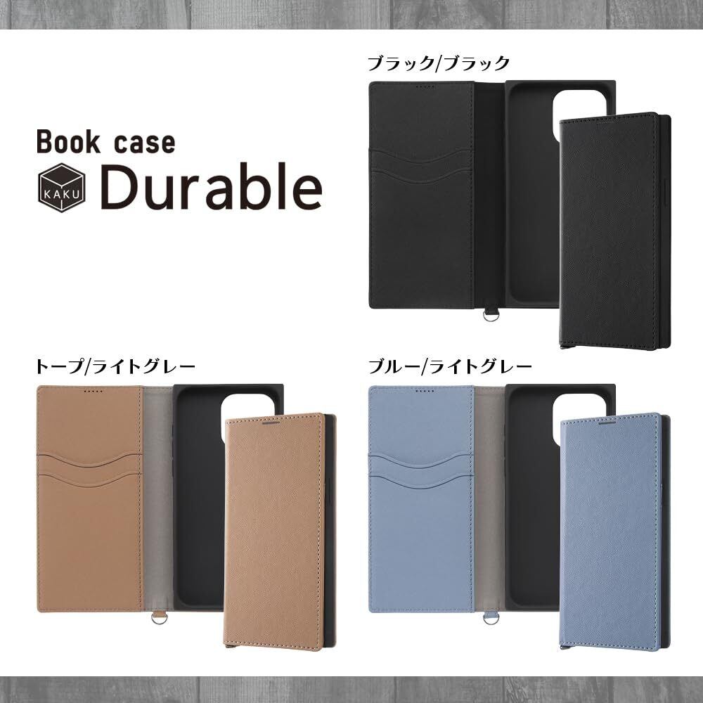 iPhone15 ProMax ケース 手帳型 衝撃吸収 マグネット無し 耐衝撃 カード3枚 スタンド機能付き アイフォン 15 プロマックス カバー/トープ/ライトグレー