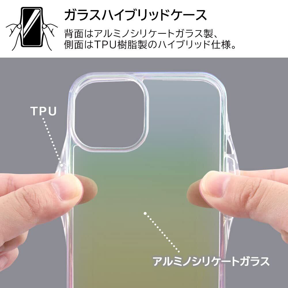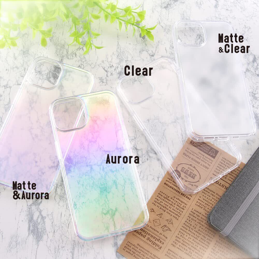 iPhone 14 ケース/iPhone 13 ケース クリア ケース ガラス x TPU ハイブリッド マット オーロラ レインボー レインボー 虹