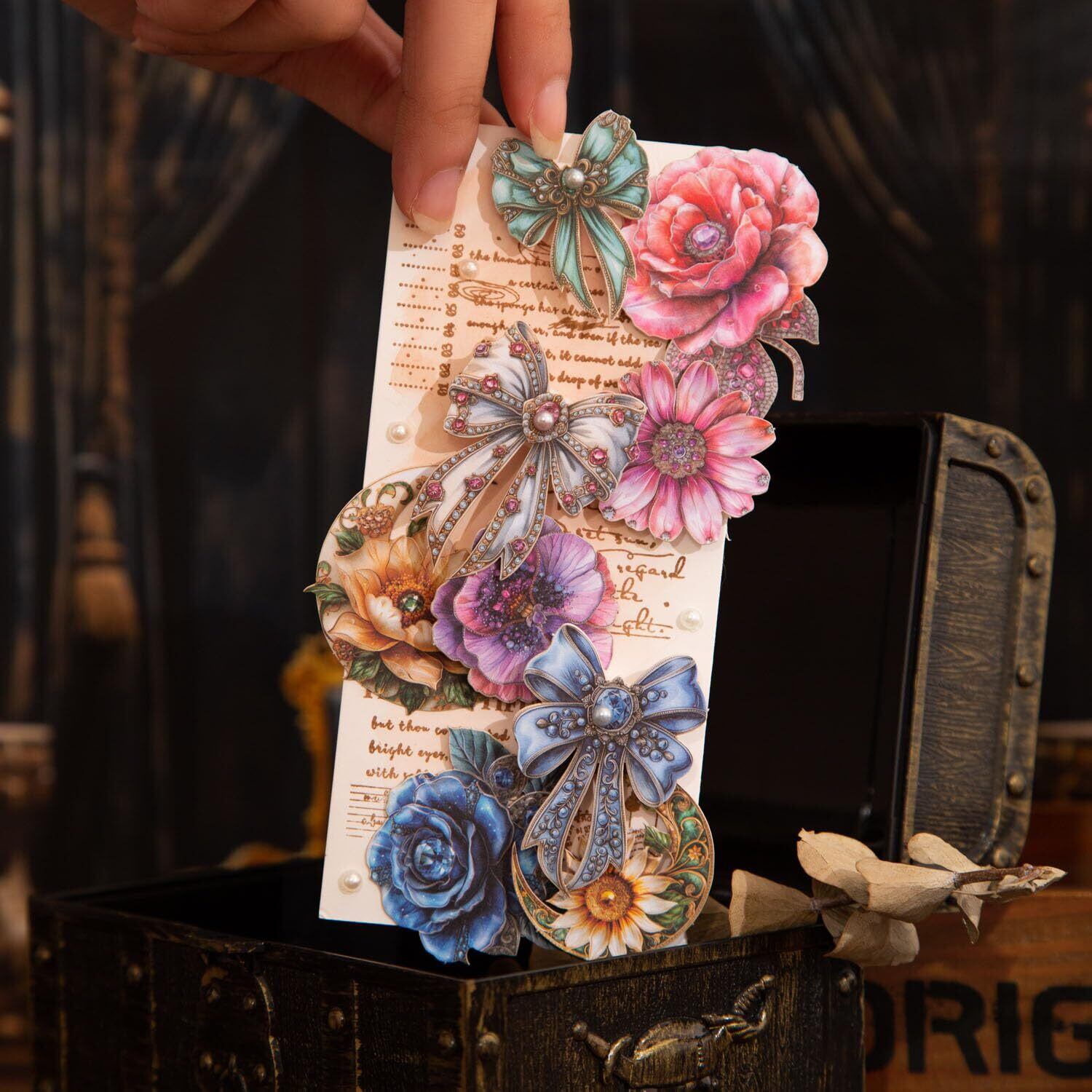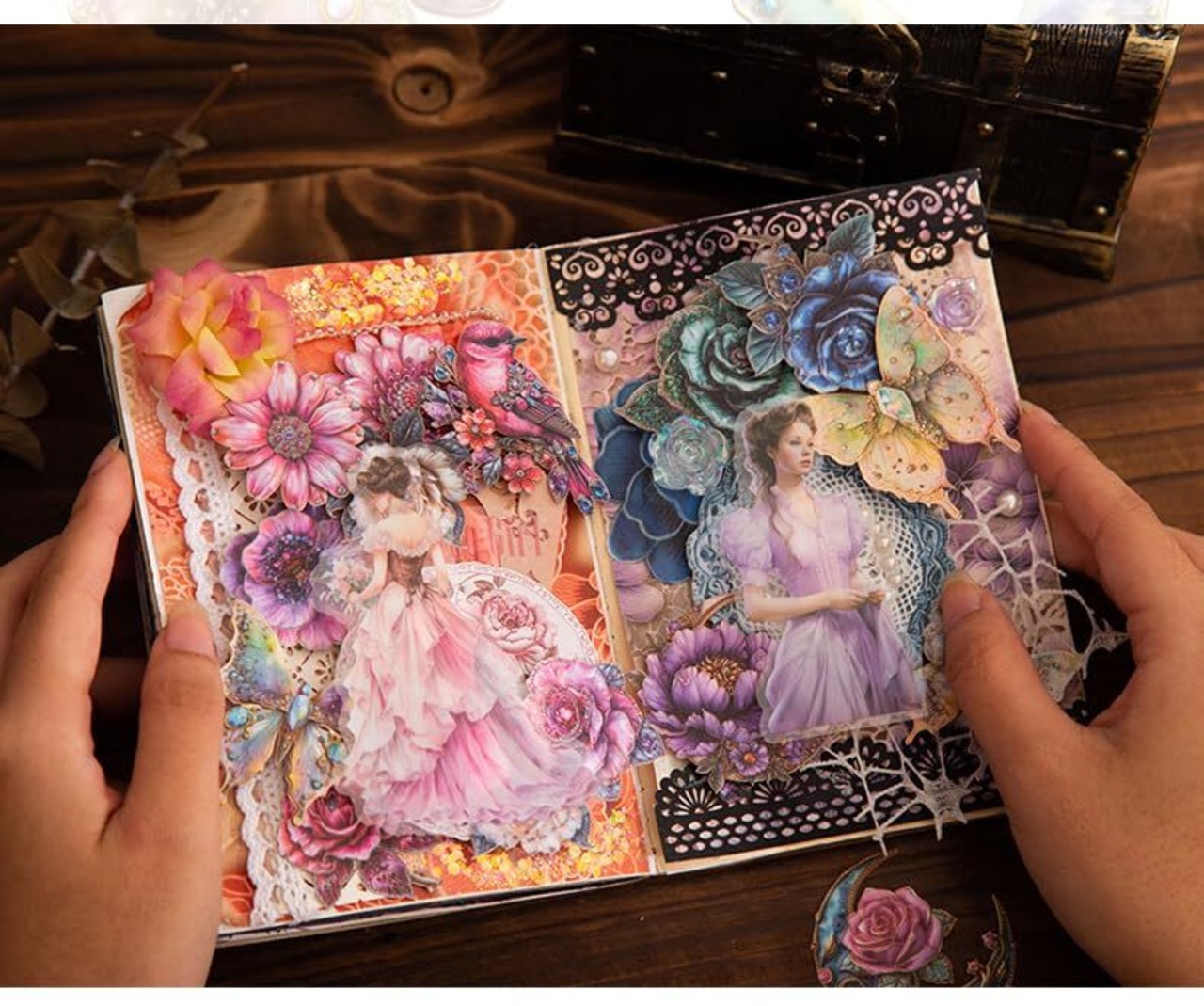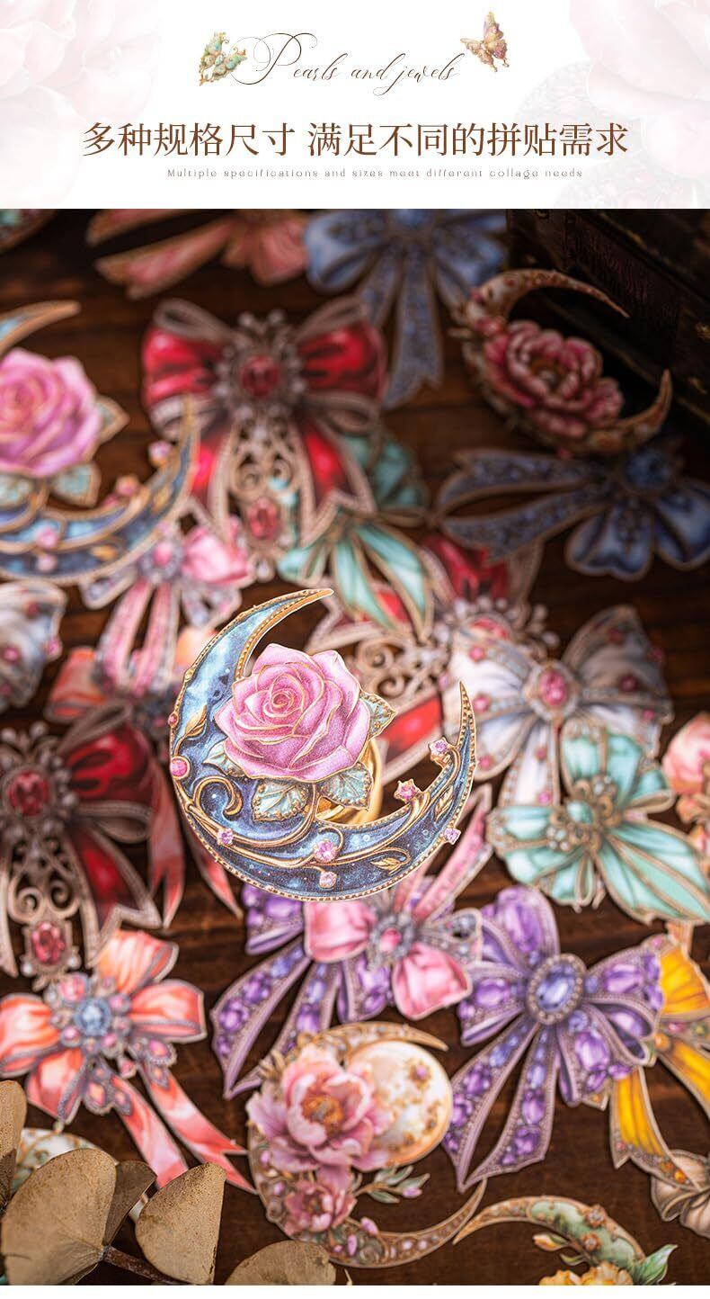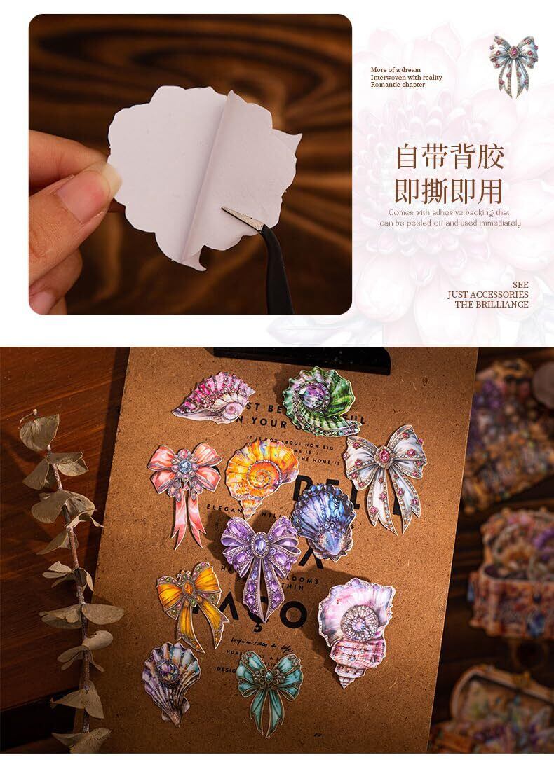 120枚 シール フレークシール コラージュ 素材 ペーパー 素材紙 レースユートピアステッカーレトロ真珠の宝箱 海外韓国 シール帳 ,メモ用紙ノート素材、日記装飾用品 (zhuguangbaohe)