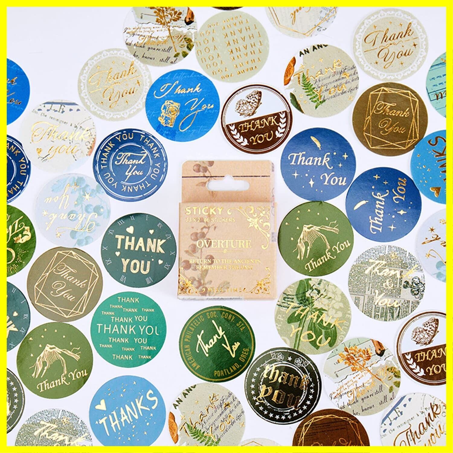 感謝シール 丸型 カラー 花柄 Thank You ありがとうシールセット ステッカー 金箔押し 金 ゴールド キラキラシール かわいい おしゃれ フレーク封印シール 包装シール ギフトシール 92枚 (レトロ系)