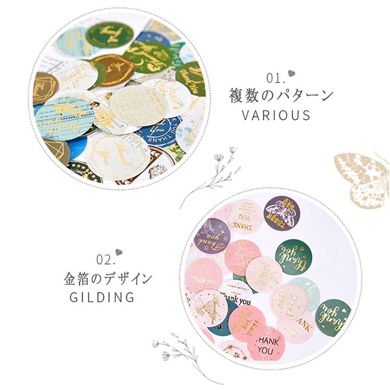 「精巧なデザイン」フォント「thank you」は多種多様で、とても芸術的です。文字の周りには精巧な花柄、ハート、トーラスなどの要素があり、どの感謝シールも丁寧にデザインされており、大切な気持ちを伝えることができるありがとうシールです。